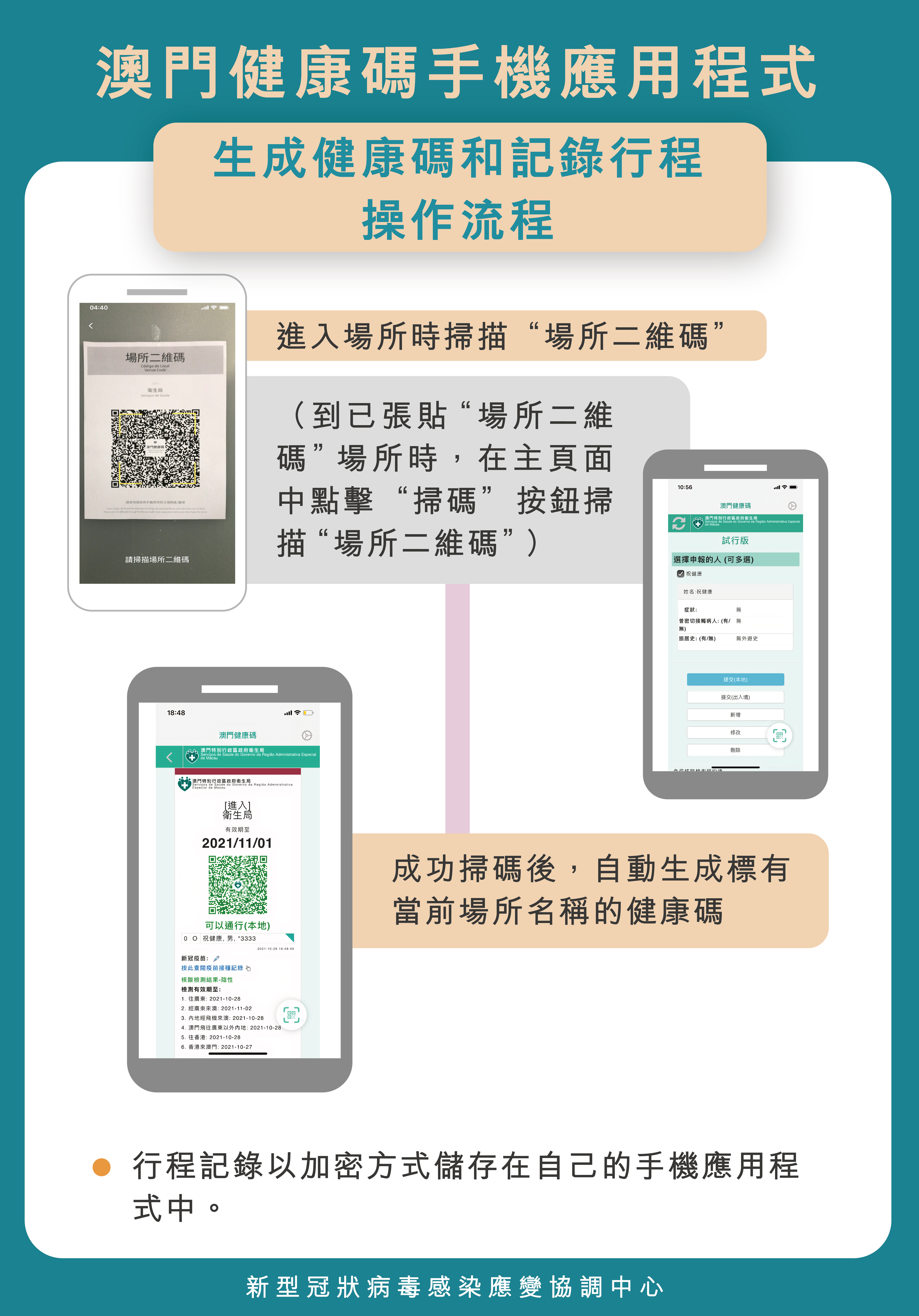 新型冠狀病毒感染應變協調中心表示,截至今(16)日下午2時,「澳門健康碼」手機應用程式累計註冊人數逾479,000人,呼籲居民儘快下載,年輕人可藉著周日假期,協助家中長者下載並教導其使用。