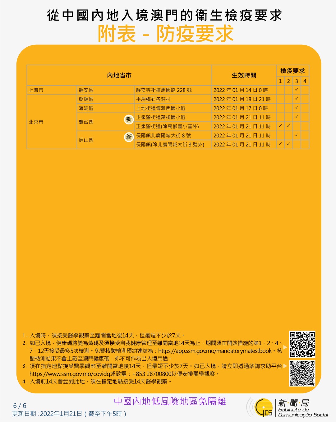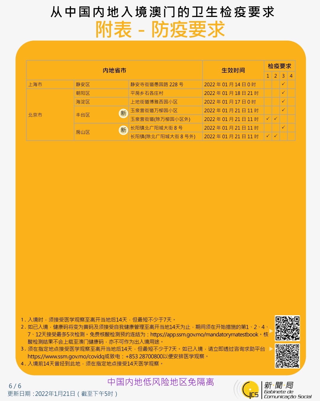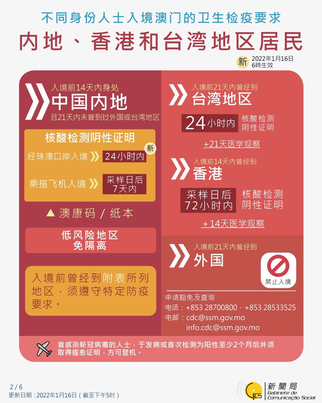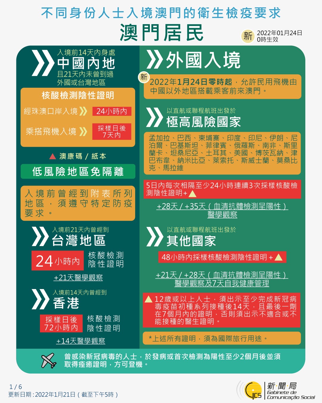 【圖文包】2022/1/21最新入境澳門的衛生檢疫要求