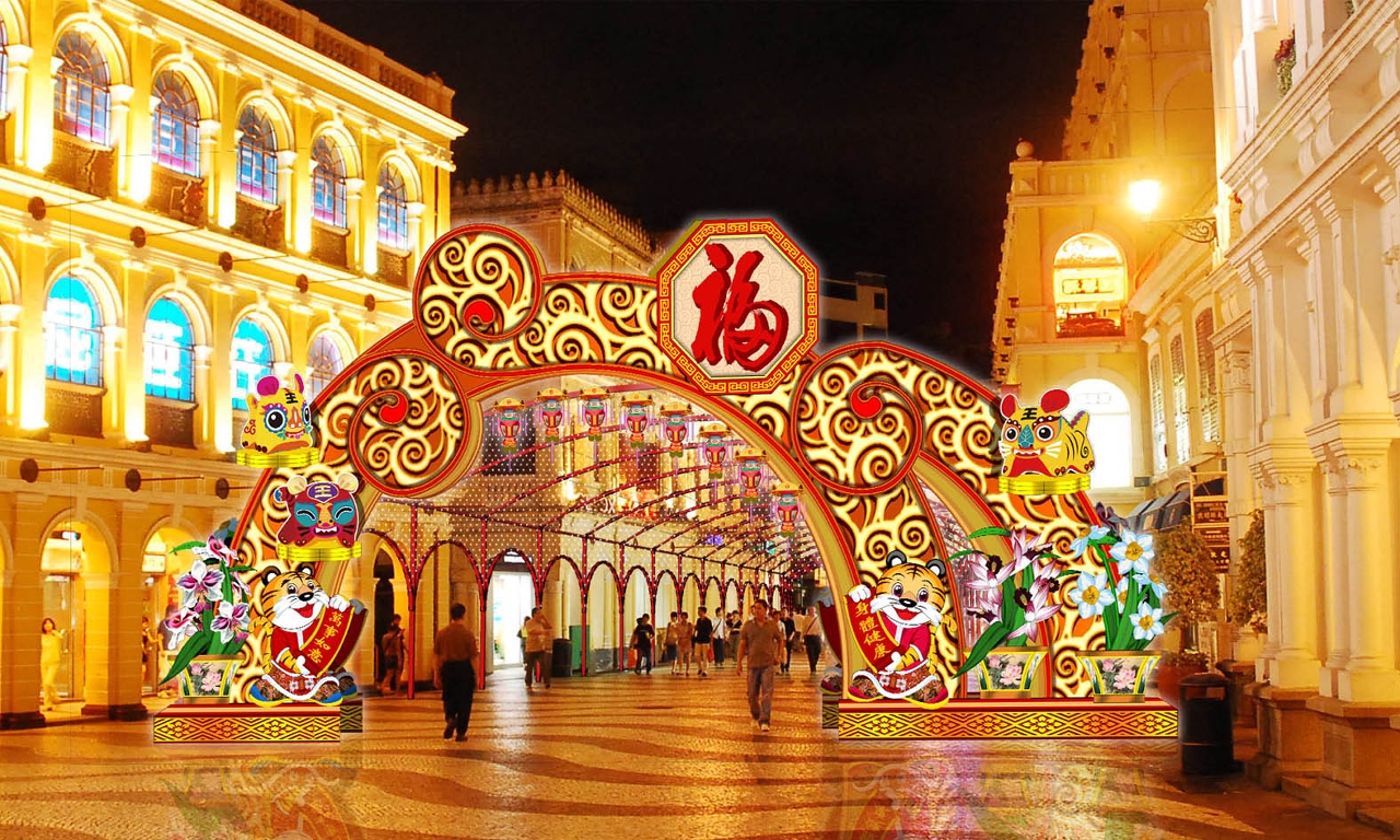 市政署在全澳各區的主要街道、廣場、公園、圓形地等放置富有農曆新年氣氛的燈飾,佈置地點共有60個,包括澳門半島40個、氹仔12個及路環八個。燈飾佈置以“虎虎生威迎新春"為主題,除了傳統的大型宮燈外,還有生動活潑老虎造型的大型燈組;加上配搭不同吉祥意義的小型吊掛燈飾,以及十二生肖小型座地燈飾。其中於議事亭前地除了會設置富有春節氣氛的大型燈組外,還有透過動感燈光效果和中式紅燈籠所打造的大型裝飾隧道。透過於全澳各區不同形式的燈飾佈置,讓小城增添歡慶氣氛。