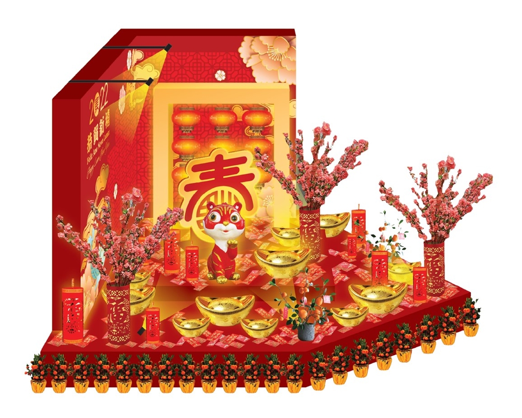 市政署今年在嘉樂庇總督大橋氹仔橋口、祐漢公園、氹仔海濱休憩區、港珠澳口岸(澳門)、石排灣郊野公園豎立生肖雕塑,為市民及遊客增添節日氣氛。配合農曆壬寅虎年,今年生肖虎塑像高約三米,設計意涵取自福虎之勇猛活力,面相表情精神飽滿,雙目富有生氣,身姿活潑矯健,披上新春傳統特色服飾,手持寫上心想事成的揮春,腳踏寓意吉祥喜慶的繡球,以祝願全澳巿民虎年大吉大利,虎虎生威!