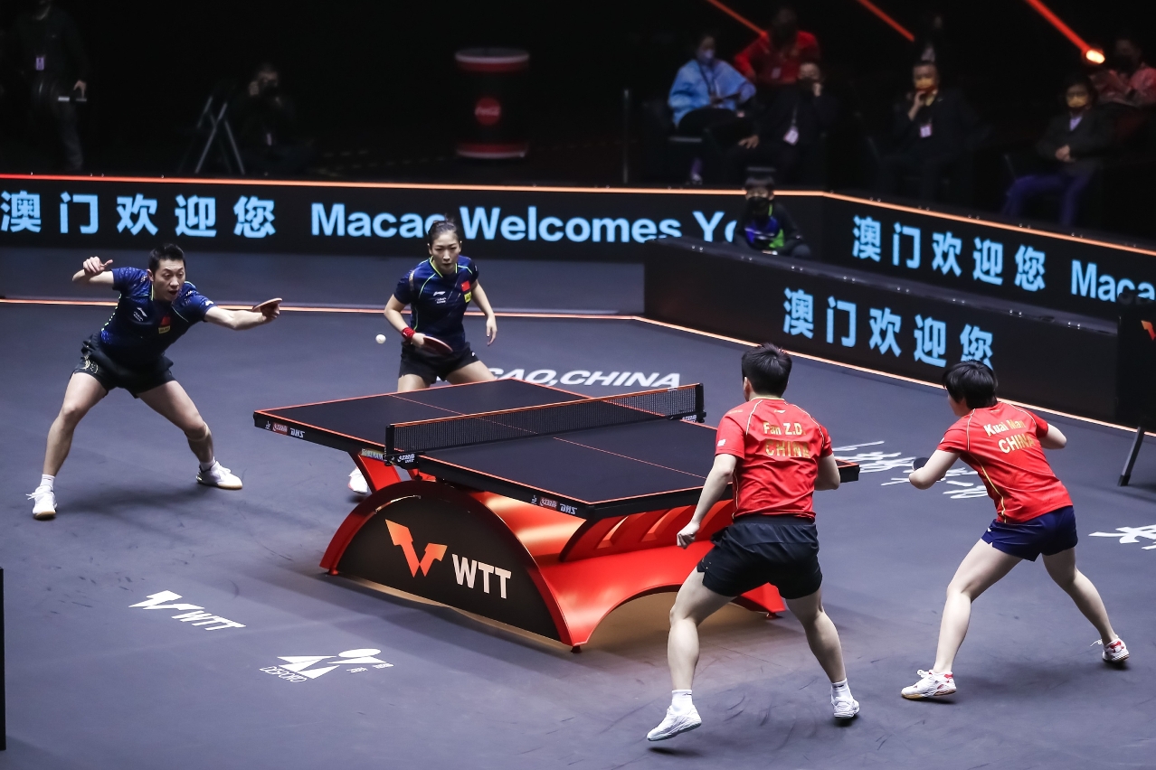 由體育局及WTT世界乒乓球職業大聯盟主辦、澳門乒乓總會協辦的「WTT 澳門冠軍賽 2021中國之星 ─ 由銀河娛樂集團呈獻」今日(22日)進行第四日賽事,混雙錦標由許昕/劉詩雯組合擊敗樊振東/蒯曼奪得;另外,男單產生四強,晉級球手包括林高遠、徐瑛彬、王楚欽及許昕。賽事明日(23日)將上演壓軸日賽事,進行男子、女子單打的準決賽和決賽,球迷萬勿錯過。