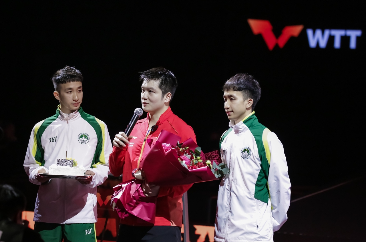 賽後隨即進行頒獎,頒獎嘉賓包括國際乒聯執行副主席、WTT世界乒聯理事會主席及中國乒乓球協會主席劉國梁,澳門特別行政區政府體育局局長潘永權,銀河娛樂集團董事程裕昇,中國乒乓球協會理事、李寧中國體育用品有限公司董事長特別助理、品牌管理中心總經理張向都,正大集團農牧食品企業中國區副董事長葉劍,中國乒乓球協會理事、上海紅雙喜股份有限公司總經理樓世和,澳門特別行政區政府體育局副局長劉楚遠及林蓮嬌。