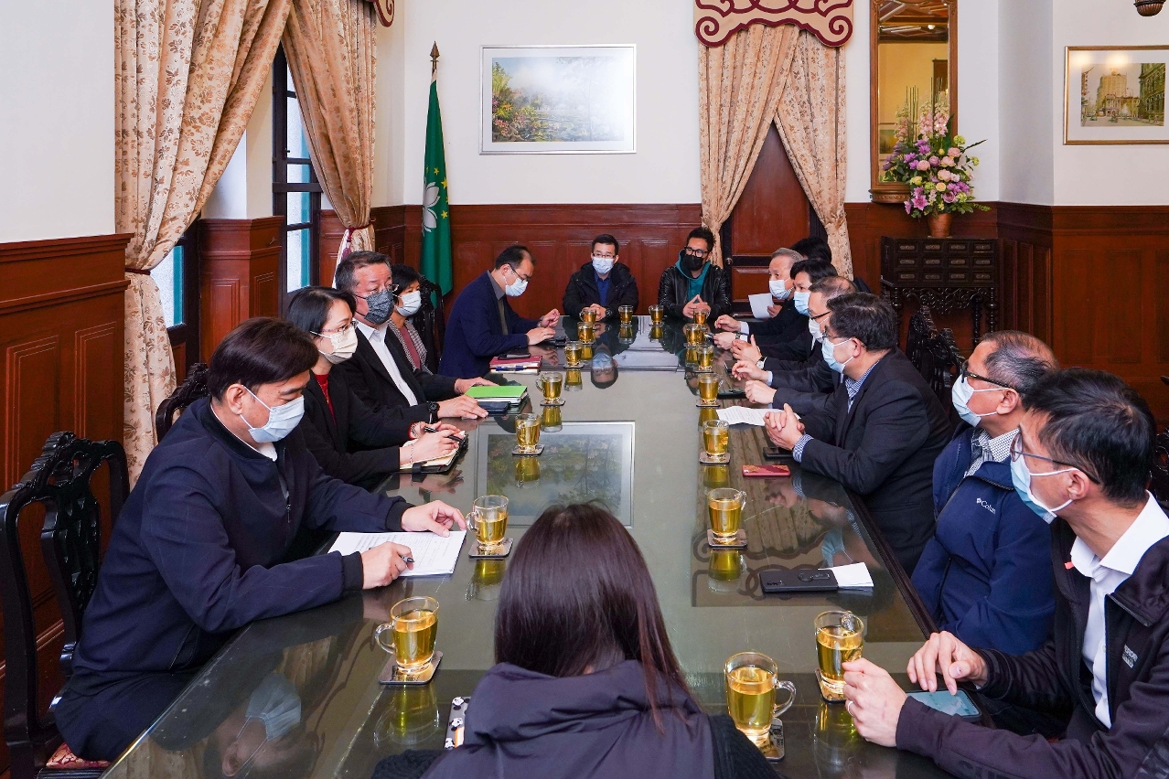 市政署市政管理委員會主席戴祖義、副主席柯嵐、委員吳秀虹,日前與立法會議員崔世平、葉兆佳、澳門供應商聯合會理事長李傑興及澳門凍肉食品業商會理事長梁仕友等商界代表,就加強冷鏈食品從業員安全健康保障,以及冷鏈食品及進口水果的溯源追蹤措施等舉行會議。