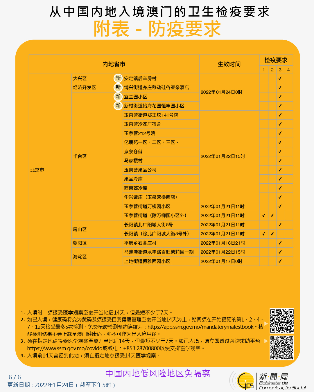 【圖文包】2022/1/24最新入境澳門衛生檢疫要求和措施