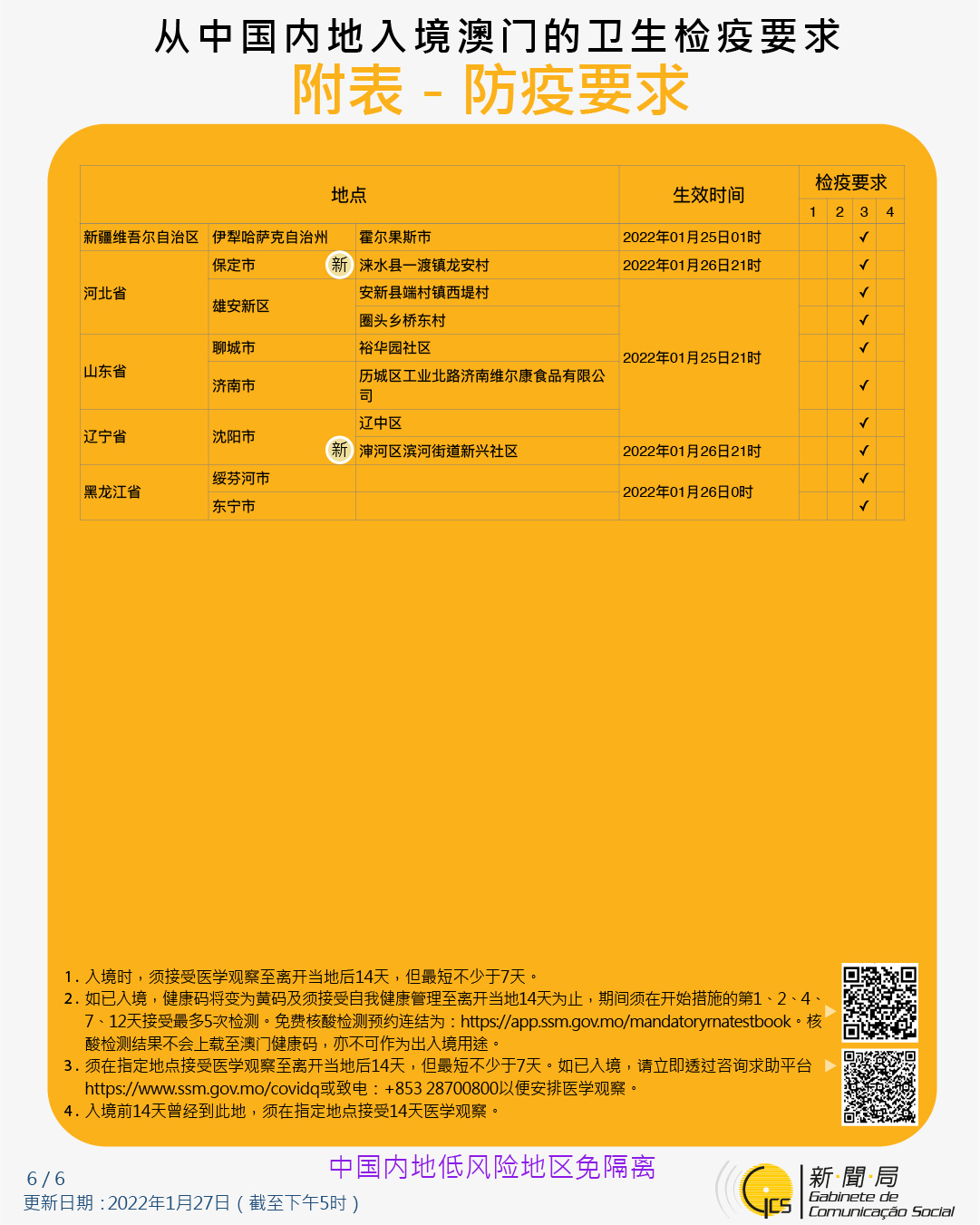 【圖文包】2022/1/27最新入境澳門衛生檢疫要求