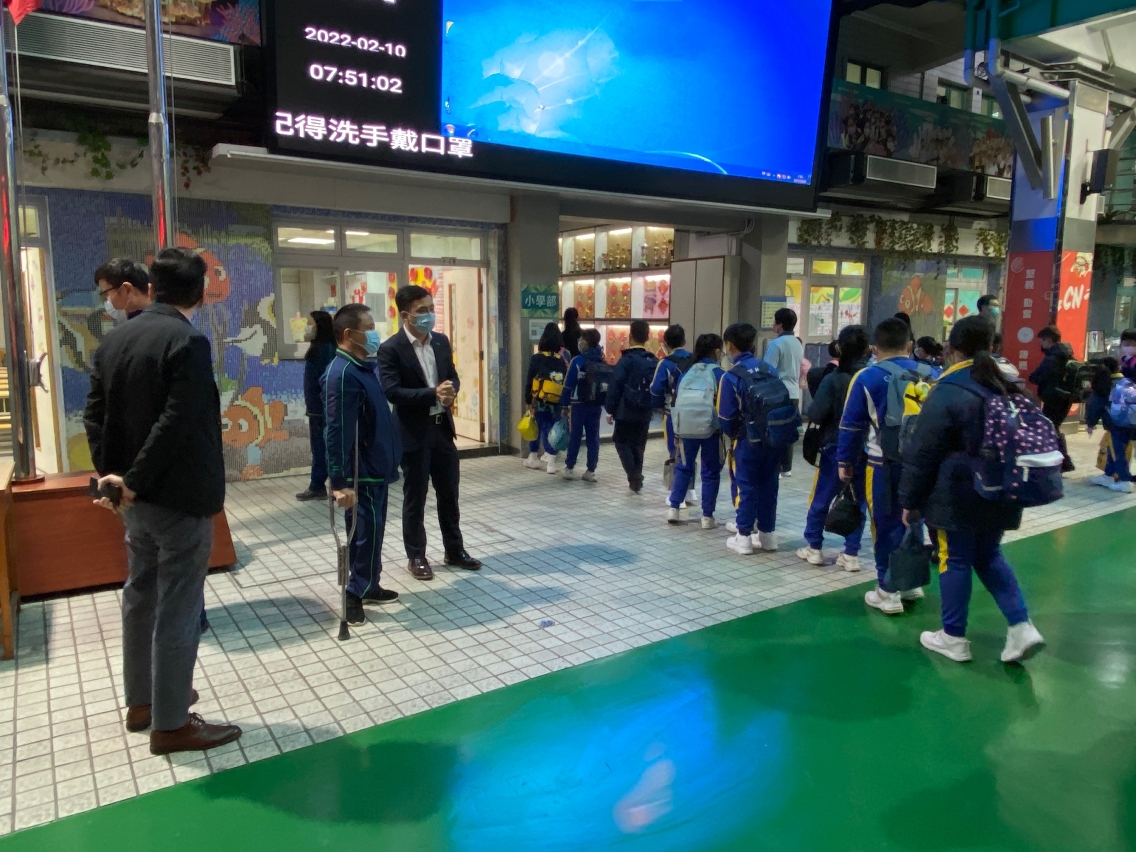 2月10日早上,教青局領導及主管到多所學校實地了解學生於長假期後的上學情況,並再次提醒學校須嚴格遵守防疫指引,呼籲教職員加強留意個人衛生,切勿鬆懈。經視察,學校均有嚴格執行各項防疫措施,包括:安排教職員為所有入校師生測量體溫,檢查健康碼,師生在校期間已佩戴好口罩,有提供足夠的酒精搓手液讓師生清潔雙手,整體過程有序順暢。學校負責人表示學生上課情況如常,將密切留意學生的學習情況,適時作出協助。
