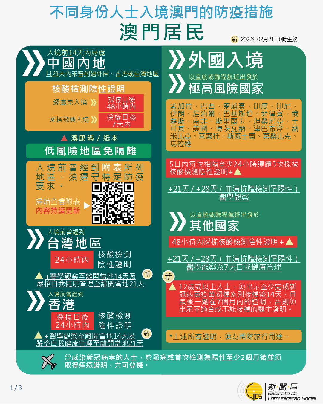 【圖文包】2022/2/17最新入境澳門的防疫措施
