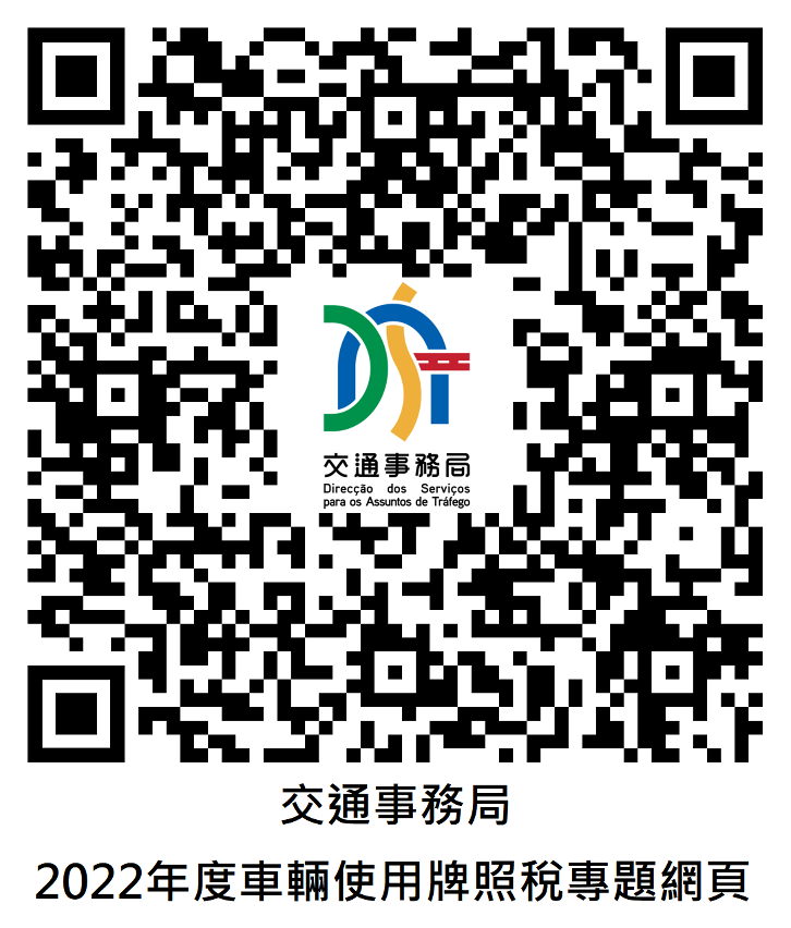 局方建議車主優先選用網上繳納“行車稅”,包括透過局方電子繳費網頁https://epay.dsat.gov.mo、“交通資訊站”App、“巴士報站” App或“一戶通”App,有關其他繳納方式、獲取繳稅憑據方式、查詢繳納狀態及年度定期檢驗的日期的詳情可瀏覽局方網頁(附QR Code)。