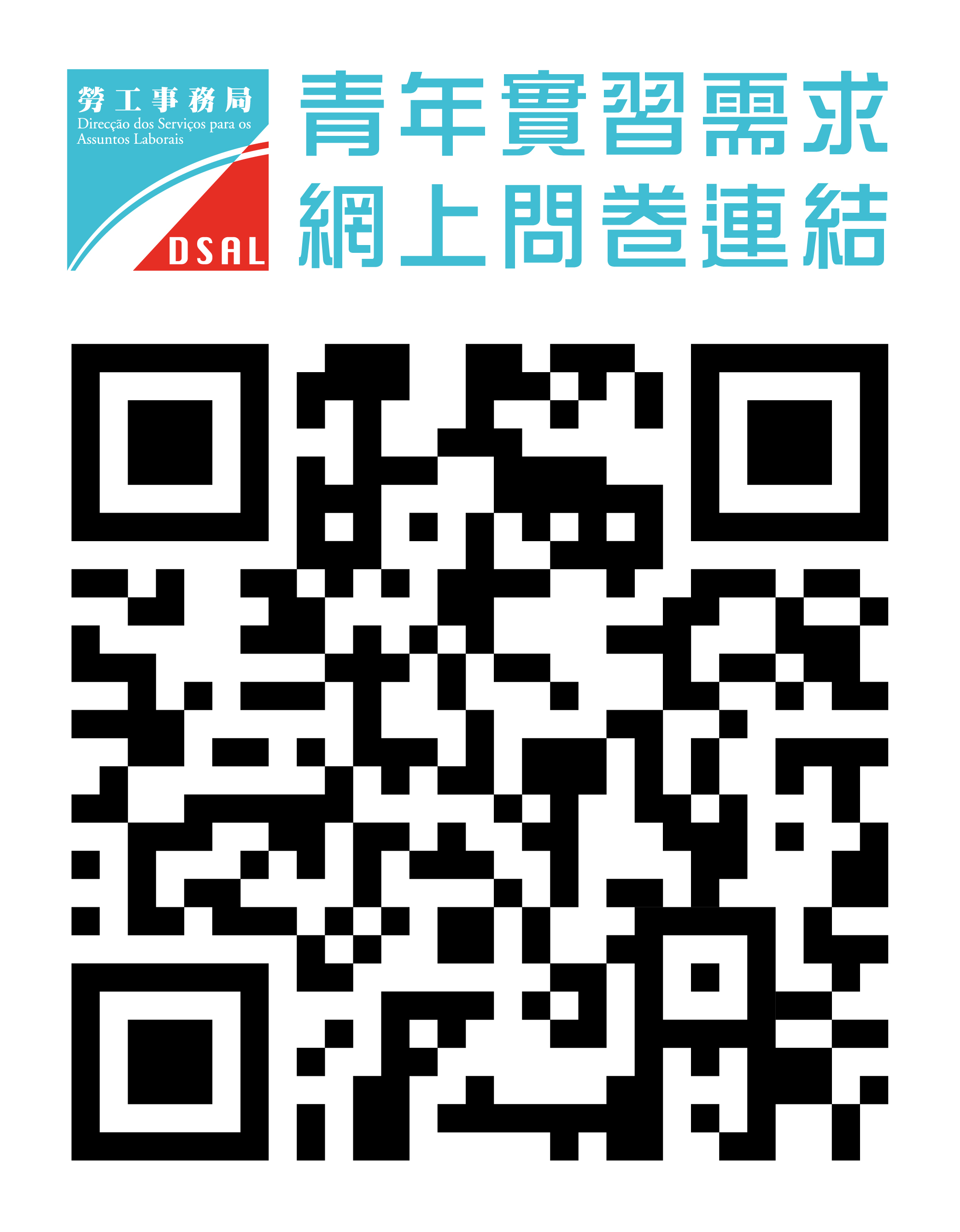 勞工局歡迎本澳應屆畢業生,透過掃瞄網上問卷連結發表意見。如有意了解更多青年就業服務及相關活動資訊,可登入勞工局網頁(www.dsal.gov.mo)了解,亦可於辦公時間致電2872 2108/2870 0277查詢。