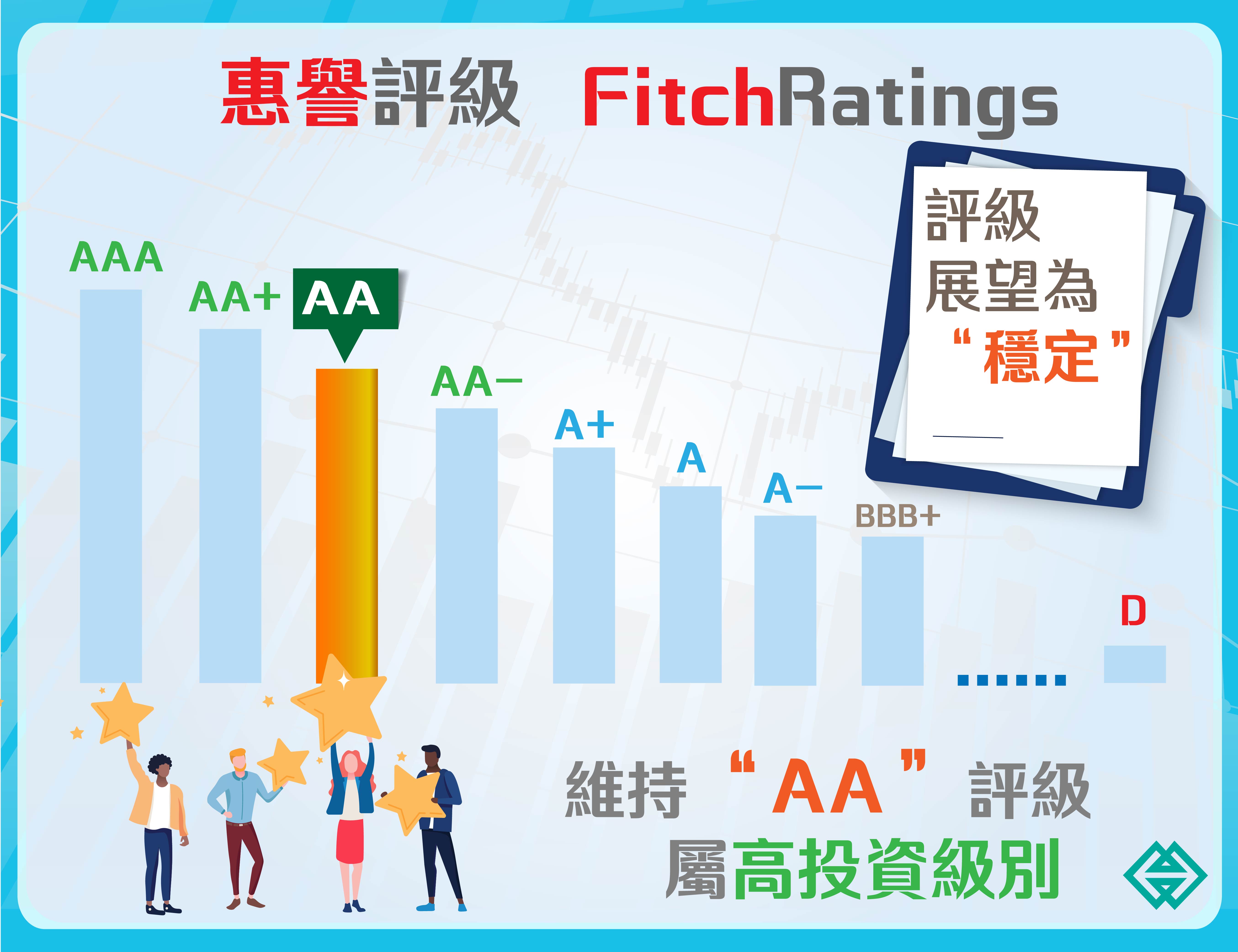 根據惠譽的評級定義,“AA”評級表示擁有非常穩健的財政實力來兌現財務承諾,而且這種實力不易受到可預見的事件影響,因此預期違約的風險極低。