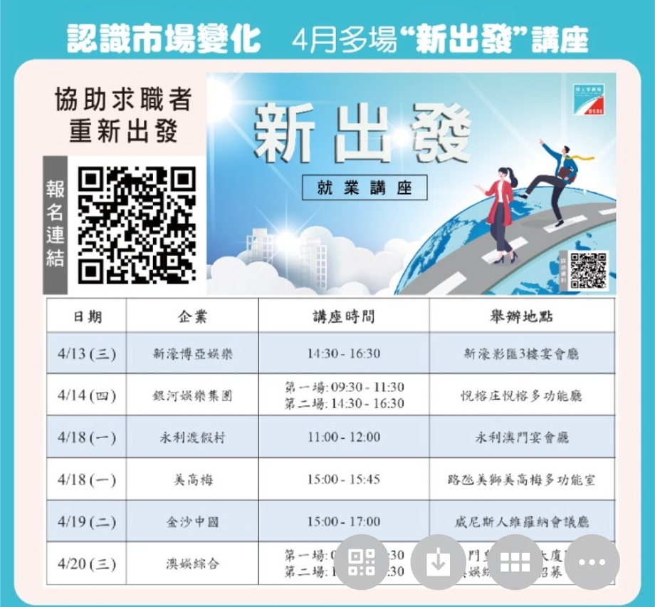 “新出發”就業講座專頁連結:https://www.dsal.gov.mo/zh_tw/standard/new_start_seminar.html