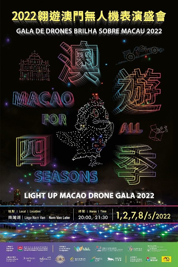 旅遊局將於5月初舉辦“2022翱遊澳門無人機表演盛會”,在勞動節假期(5月1及2日)和接續的週末(7日和8日)四個晚上於南灣湖上演8場精彩表演,歡迎居民和旅客到南灣湖區及雅文湖畔觀賞,共度節日假期。