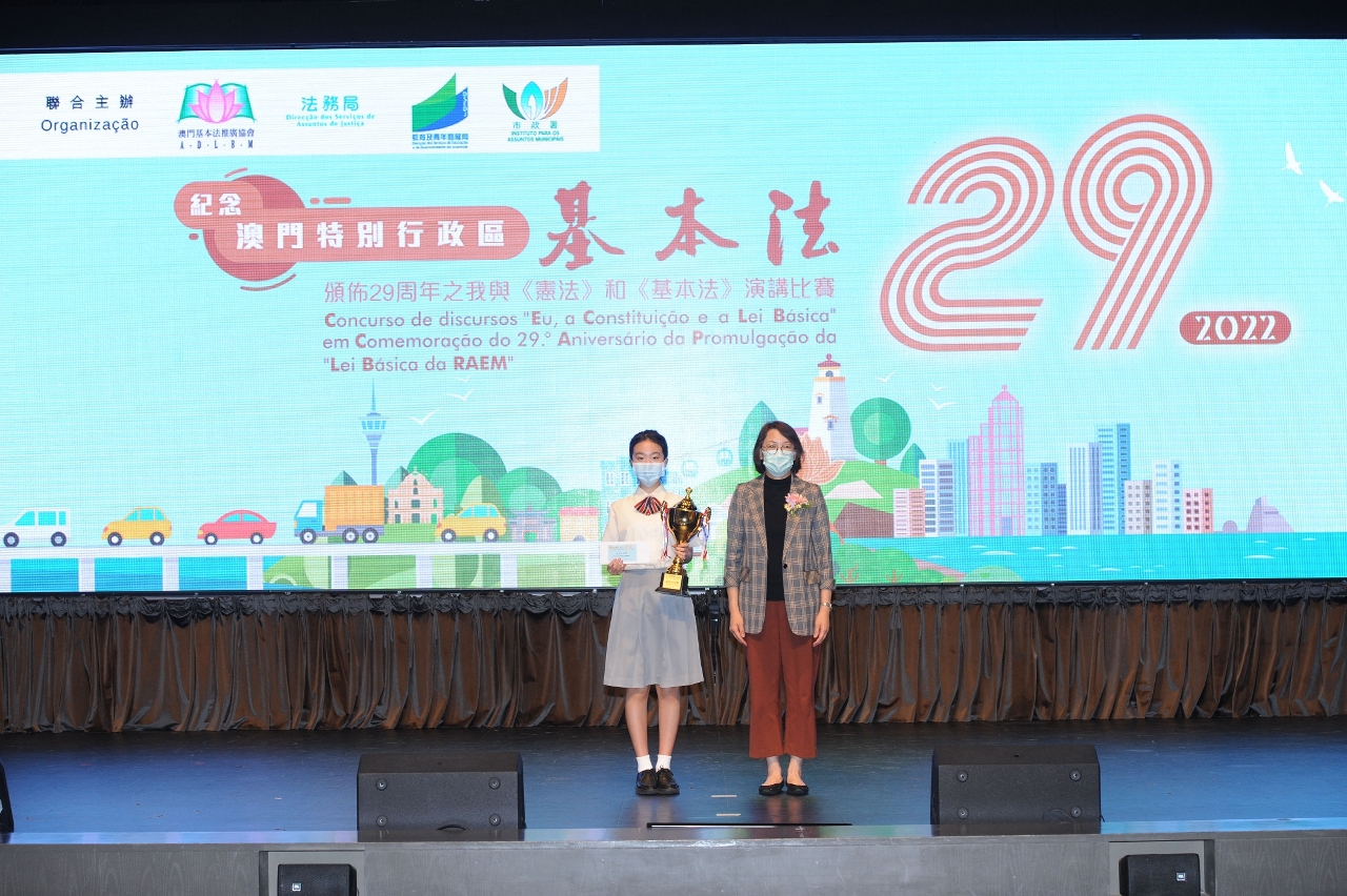 為持續向青年學生推廣《憲法》和《基本法》,澳門基本法推廣協會、法務局、教育及青年發展局、市政署聯合主辦的 “紀念《澳門特別行政區基本法》頒佈29周年之我與《憲法》和《基本法》演講比賽”決賽已於5月15日在聖保祿學校禮堂順利舉行。為配合防疫工作,減少人群聚集,今次比賽縮減了現場規模,並增設了網上直播功能,讓老師、同學可以透過網上直播為參賽同學打氣。