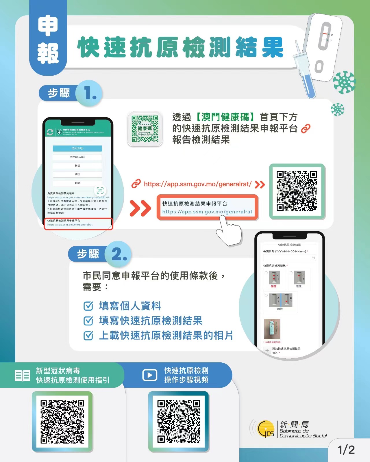 應變協調中心表示,上述檢測站均在嚴格遵守各項防疫指引的前提下為市民進行採樣,目前各站已完成清潔消毒並繼續開放。在上述時間及地點輪候採樣的市民無需擔心,應做好自我健康管理,在採樣後的兩日內可進行一次自我抗原檢測並上載檢測結果,如有不適可到醫院急診接受進一步檢查。自我抗原檢測相關資訊可瀏覽專頁 https://www.ssm.gov.mo/apps1/covidagtest/ch.aspx#clg21988。