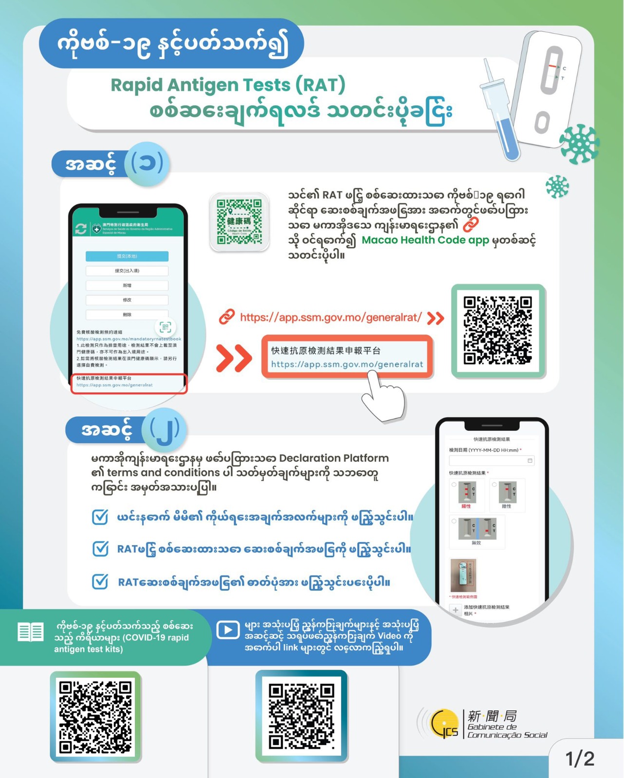申報快速抗原檢測結果圖文包 (緬甸語)