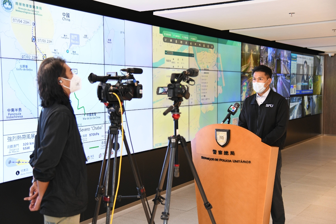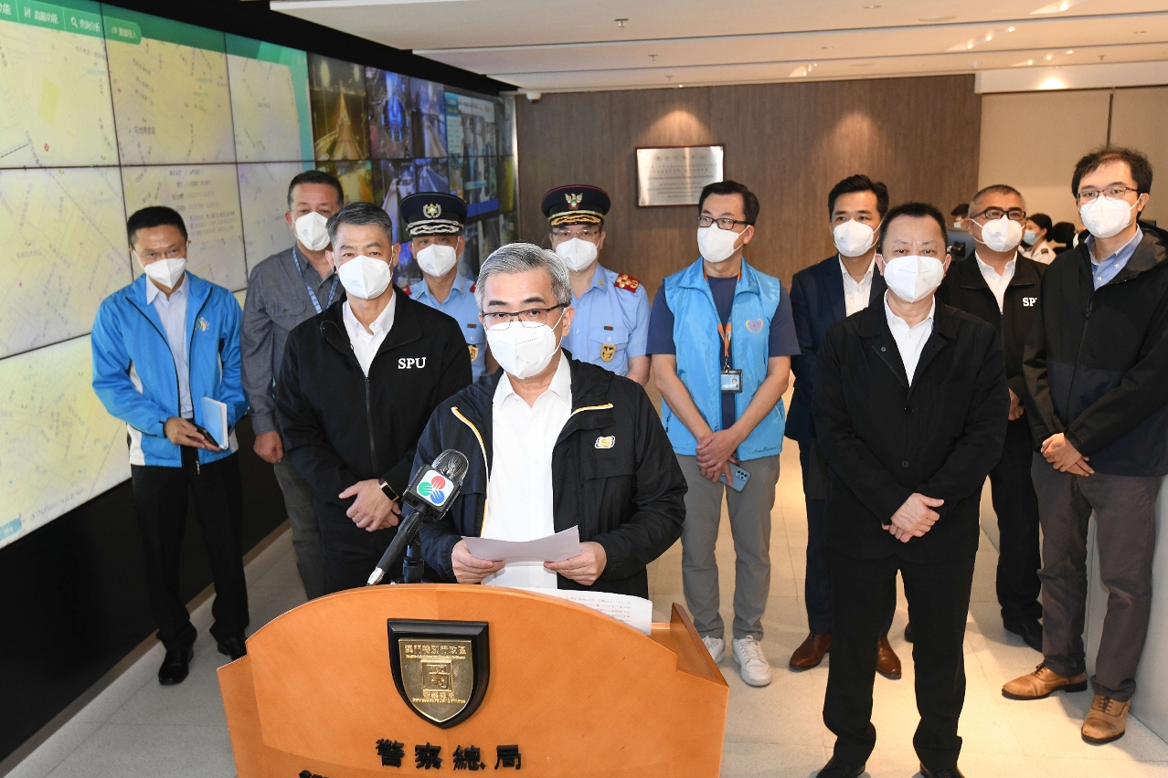 在懸掛八號風球期間,保安司司長、聯合行動指揮官黃少澤,警察總局局長、輔助聯合行動指揮官梁文昌與海關關長黃文忠聽取民防架構代表匯報應對颱風“暹芭”的工作部署,並指示民防架構成員做好疫情期間應對颱風的各項措施,保障市民生命財產安全。