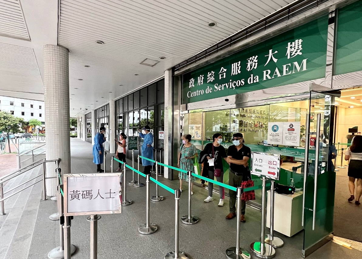 黑沙環政府綜合服務大樓、離島政府綜合服務中心於今(4)日起恢復運作,提供有限度對外公共服務。現場設有“黃碼人士專道”,排隊市民亦自覺保持一米距離,秩序良好。配合防疫,避免人群聚集,市民應先透過 www.csraem.gov.mo/csrbooking/ 預約,再按時間到場辦理服務,查詢可致電2845 1515或2842 1212。