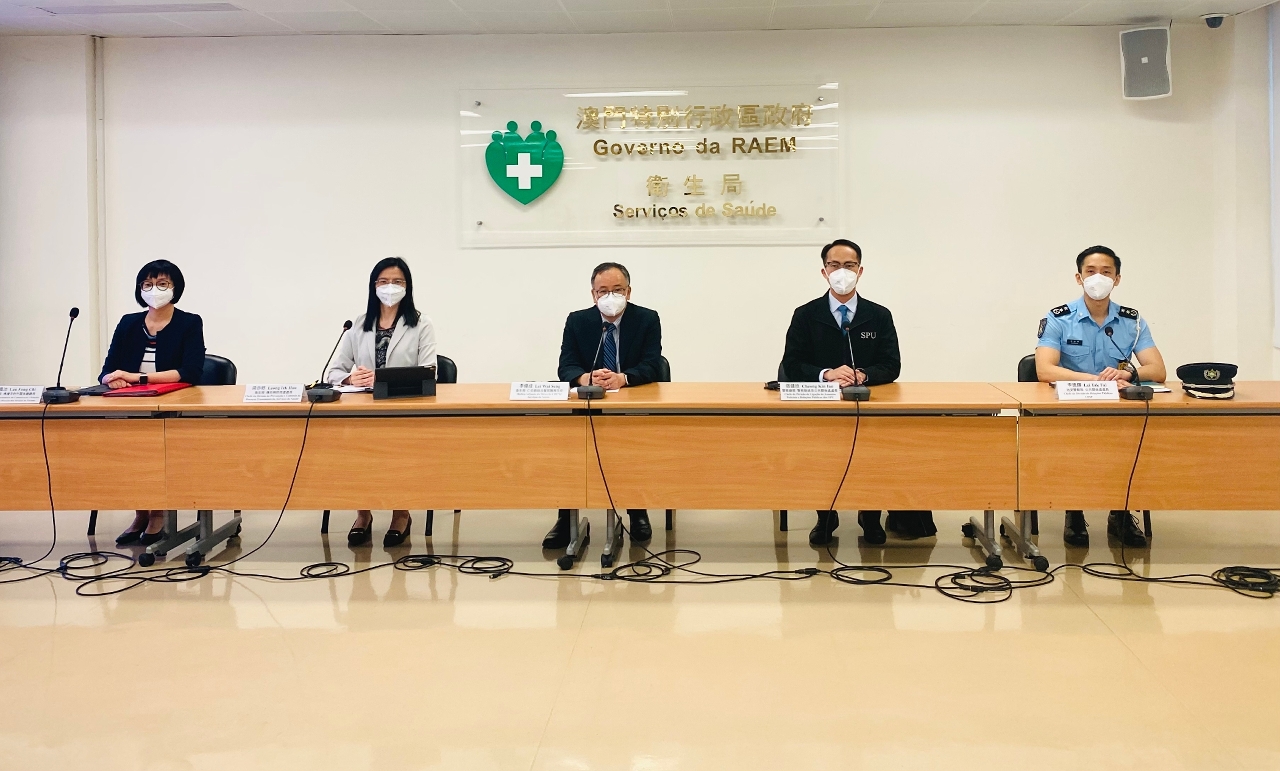 新型冠狀病毒感染應變協調中心7月27日舉行記者會,衛生局仁伯爵綜合醫院李偉成醫務主任、旅遊局傳播及對外關係廳劉鳳池廳長、衛生局疾病預防及控制中心傳染病防控處梁亦好處長、警察總局警務聯絡及公共關係處張健欣處長、治安警察局公共關係處李德輝處長分別介紹了本澳的整體防疫情況。
