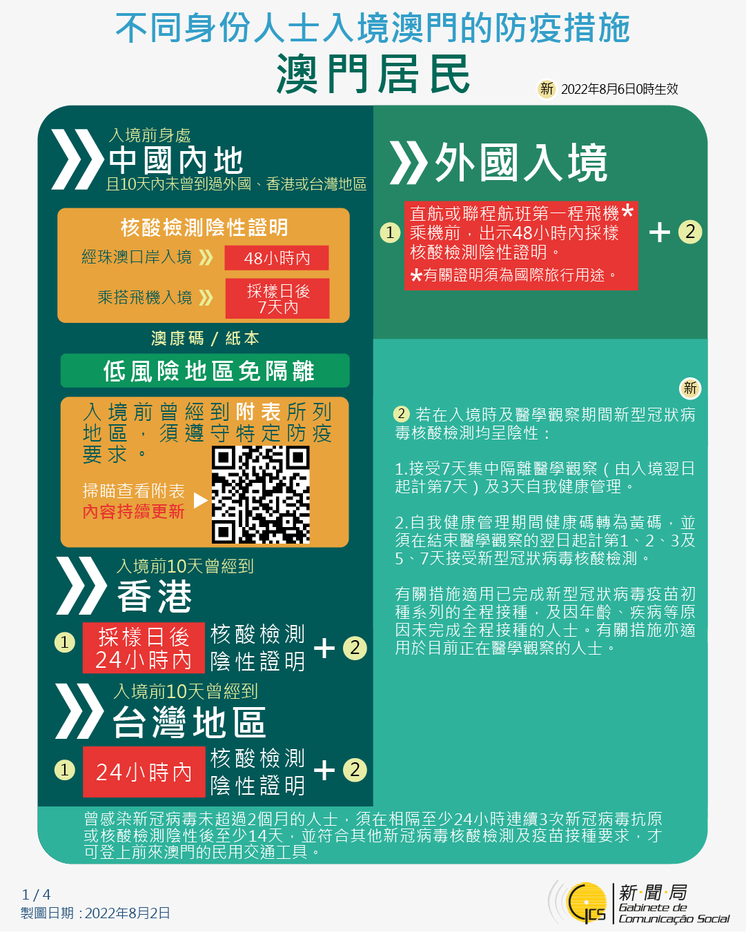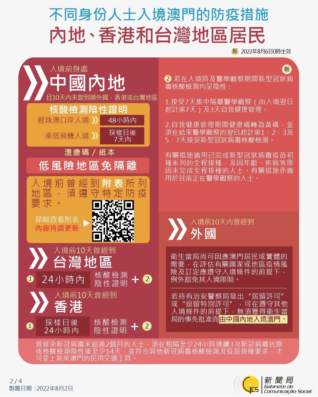 【圖文包】最新入境澳門的防疫措施 (2022/8/2)