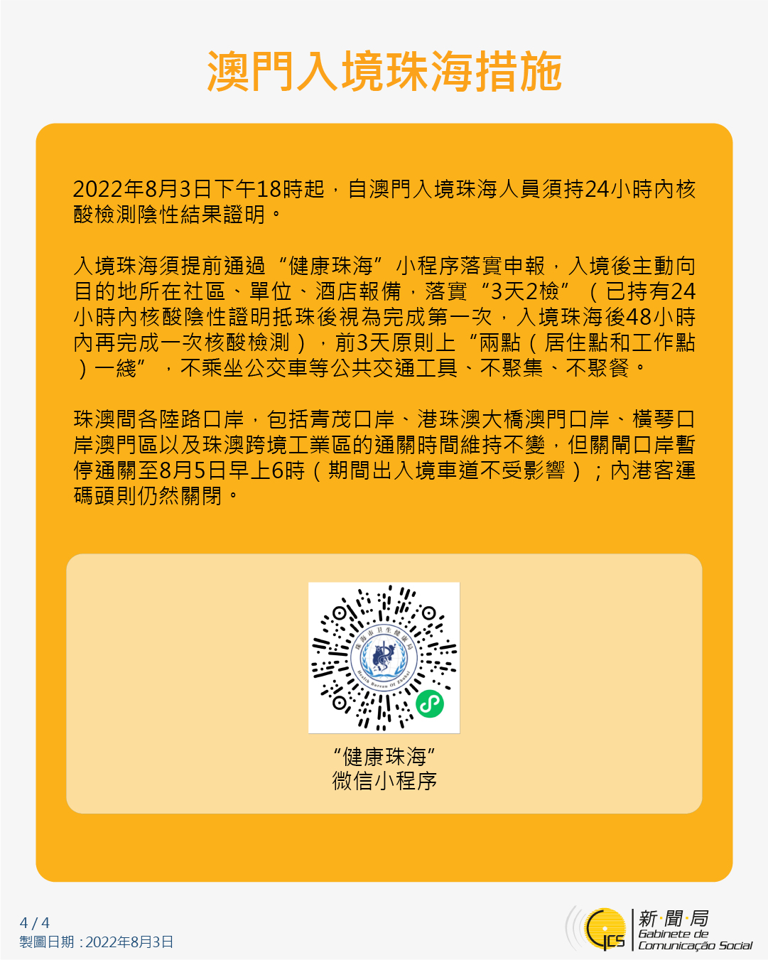 【圖文包】最新入境澳門的防疫措施 (2022/8/3)