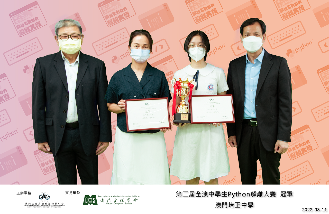 澳門生產力暨科技轉移中心為「第二屆全澳中學生Python解難大賽」舉行頒獎禮。該比賽於6月份完成,評審認為,參賽隊伍表現優異,澳門學生思考能力不斷進步,懂得善用資訊科技解決生活上遇到的問題。