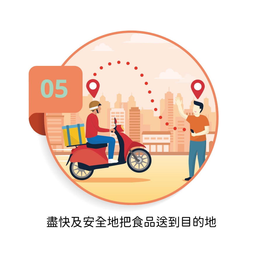 隨著外賣訂餐日漸普及,在配送外賣食品時,配送員除須遵守衛生防疫指引外,更須注意各項食品安全須知。將熱食存於保溫箱,生冷即食食品存於冷藏設備中,盡量避免長時間置放在炎熱天氣日曬雨淋,安全地把食品送到目的地。此外,亦須定期清潔消毒配送設備(如車輛及保溫箱等);配送員若身體不適,應暫停接觸食品及盡快求醫。