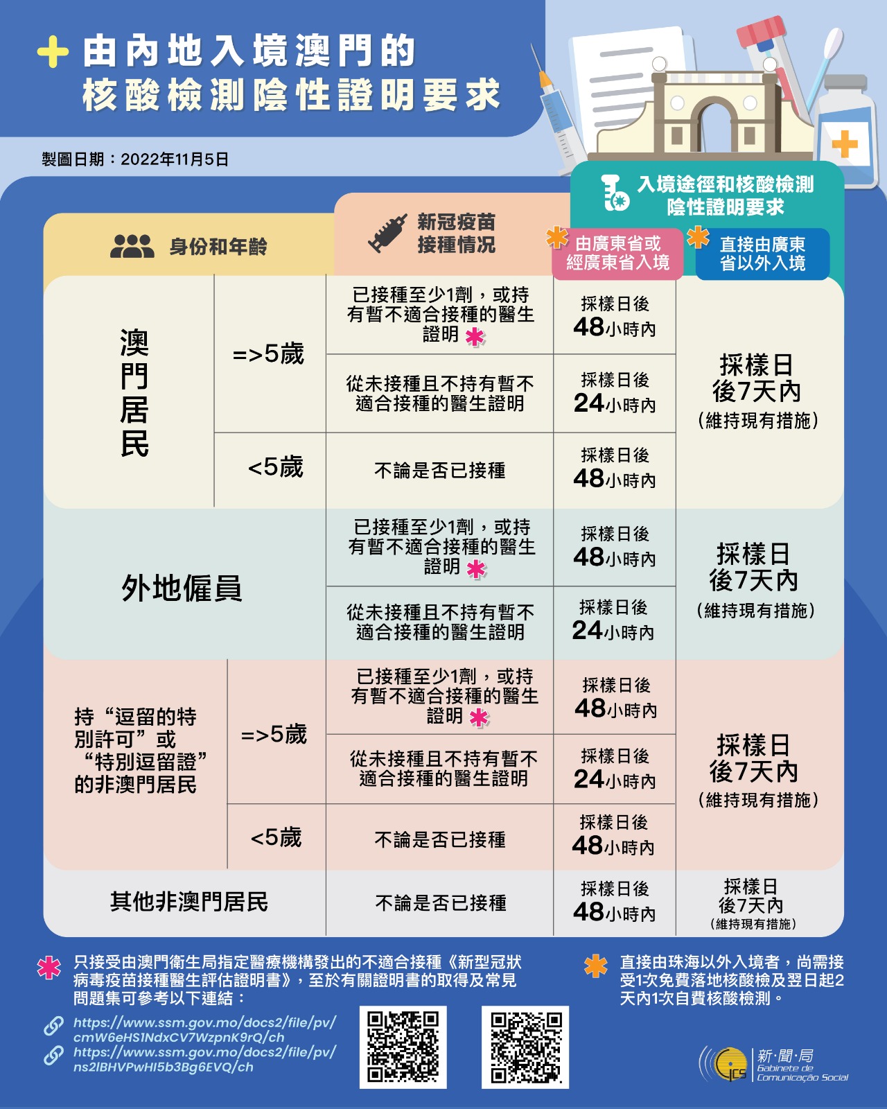 【圖文包】最新入境澳門的防疫措施 (2022/11/5)