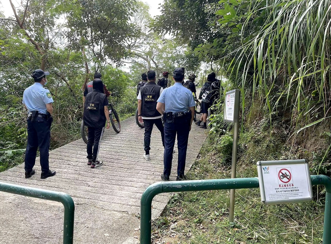 市政署聯同警方採取聯合行動,早前巡查路環步行徑、黑沙水庫家樂徑及九澳高頂家樂徑等多條山林步行徑,發現有人士以組隊形式在步行徑內騎乘自行車,故以違反《公共地方總規章》即場作出檢控。市政署呼籲切勿在山林步行徑內騎乘自行車,以免發生意外及影響其他行山人士安全,違例者可被檢控。