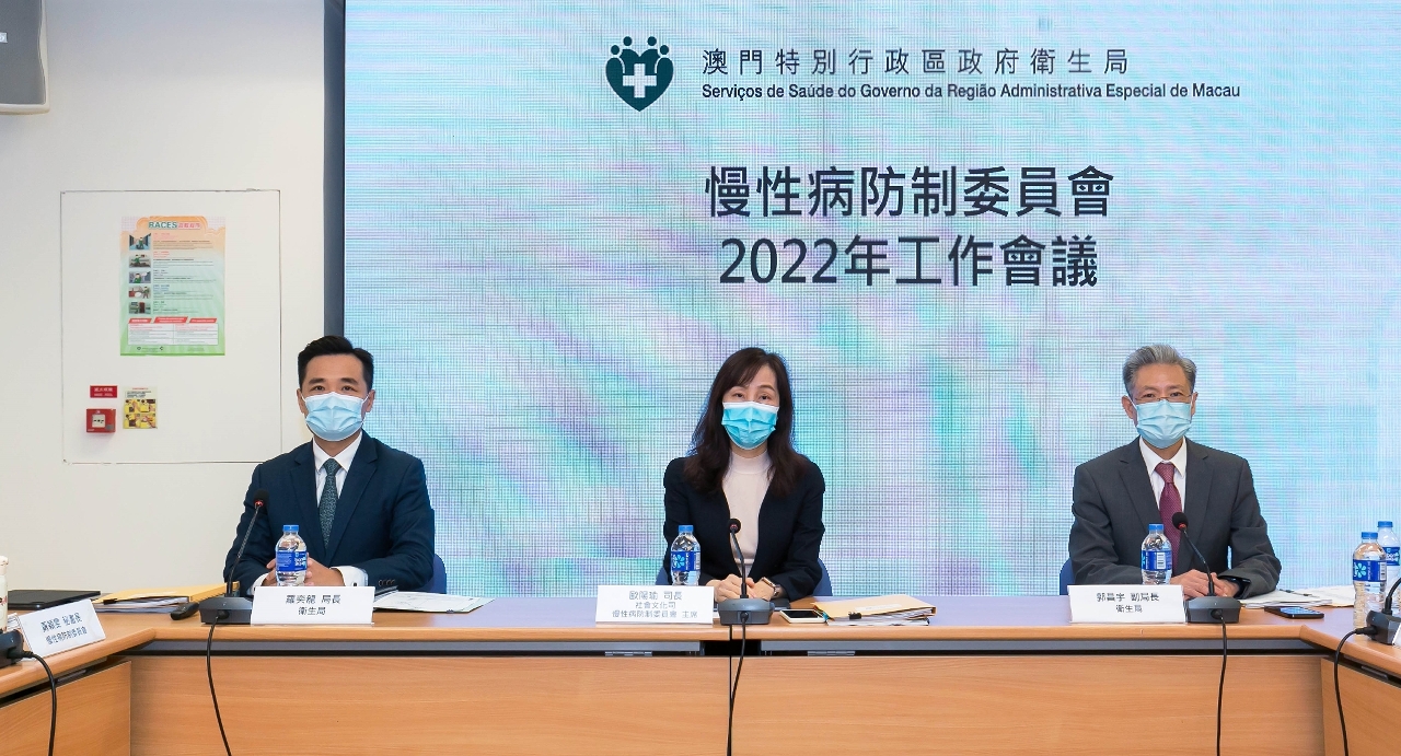 慢性病防制委員會於昨(8)日舉行2022年工作會議,慢性病防制委員會主席、社會文化司歐陽瑜司長、衛生局羅奕龍局長出席了會議。會上,委員會各工作組分別匯報了2021年工作報告及2022年工作進展,而預防及控制吸煙辦公室代表則簡介了禁止電子煙新規定。