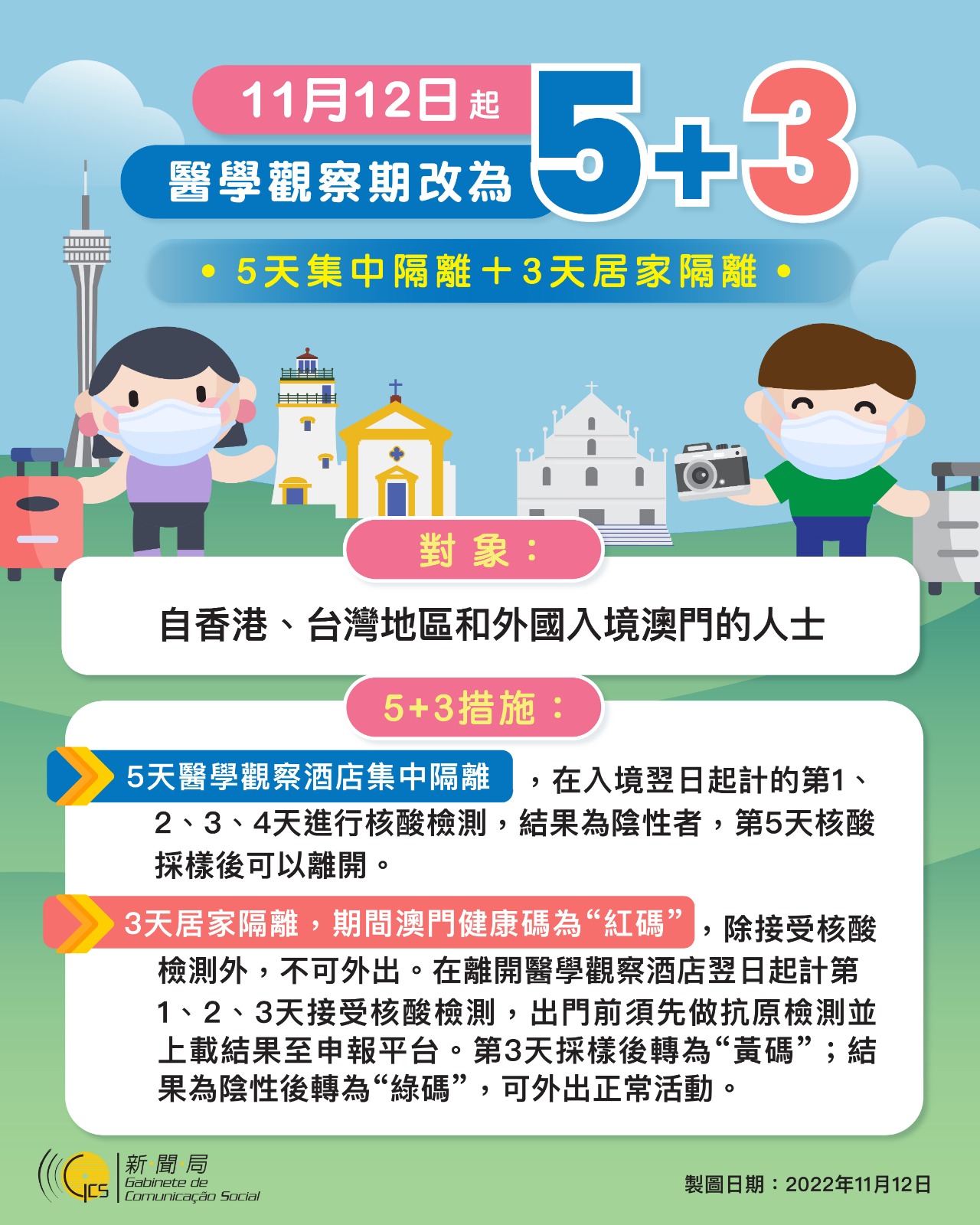 【圖文包】最新入境澳門的防疫措施 (2022/11/12)