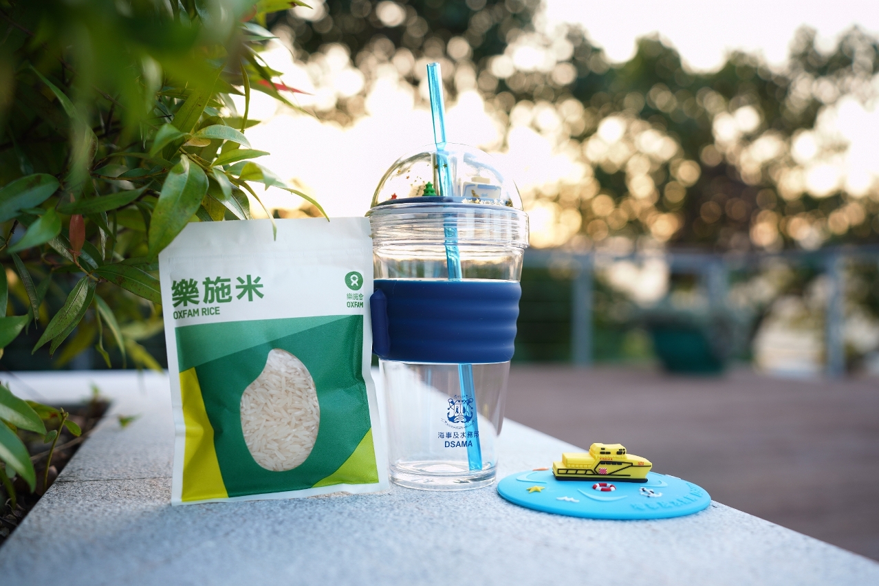 為鼓勵市民響應節水號召及積極行善,凡預購“攀山背水特別版”樂施米,並於12月4日“攀山背水”活動現場領取,每包米可獲贈由海事及水務局送出的精美水杯或杯蓋乙個。