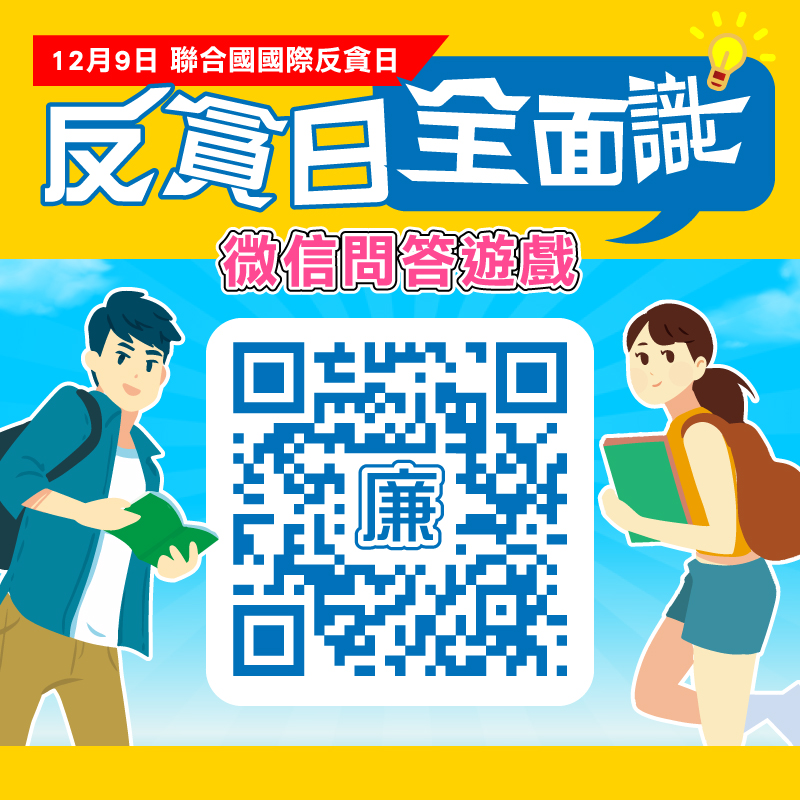 廉政公署舉辦“反貪日全面識”微信問答遊戲,期望大眾透過參與遊戲,加深對廉署及《聯合國反腐敗公約》的認識,持續爭取市民支持澳門廉政建設工作。