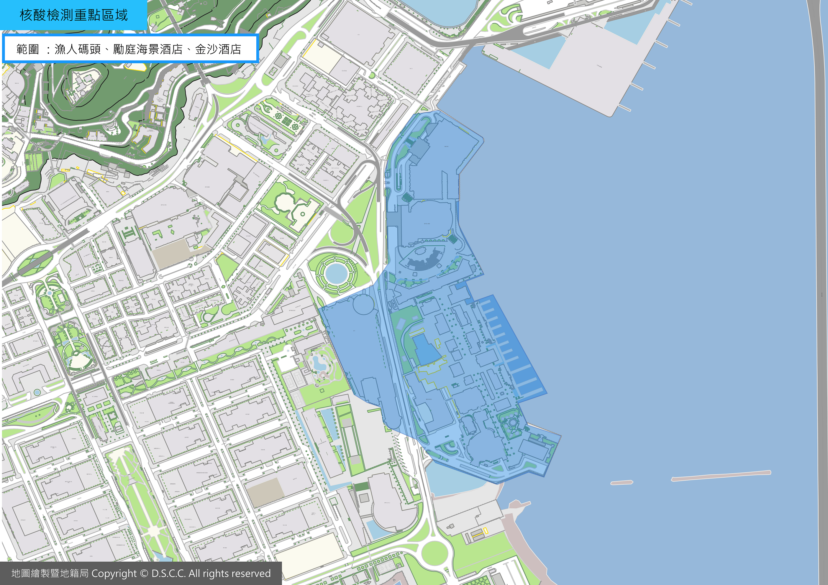 新型冠狀病毒感染應變協調中心(下稱應變協調中心)公佈,因應今(19)日新增1例輸入性新冠病毒確診個案(60歲內地女遊客)在澳門的行程軌跡,為排除當事人到過相關區域或附近活動的人士的感染風險,同時,平衡了對社會的影響,故此,不對重點區域進行人員區域管控,只針對其到過的區域開展核酸檢測,並於今(19)日下午4時開始。