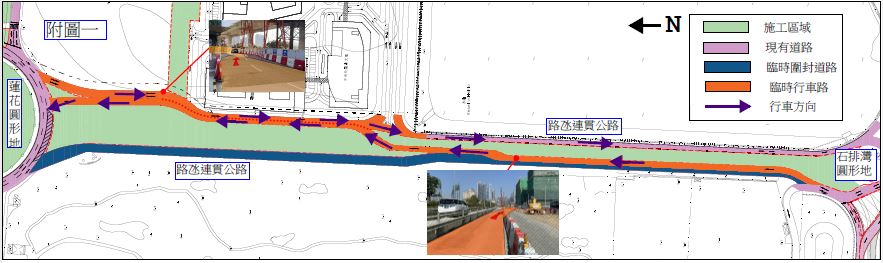 - 2022年11月29日開始至2022年12月10日期間,每日晚上10時至翌日早上6時,屆時將封閉現時介乎石排灣圓形地與蓮花圓形地之間一段路氹連貫公路的北行線部分路段,車輛可使用臨時行車線至蓮花圓形地方向。(詳見附圖一)。