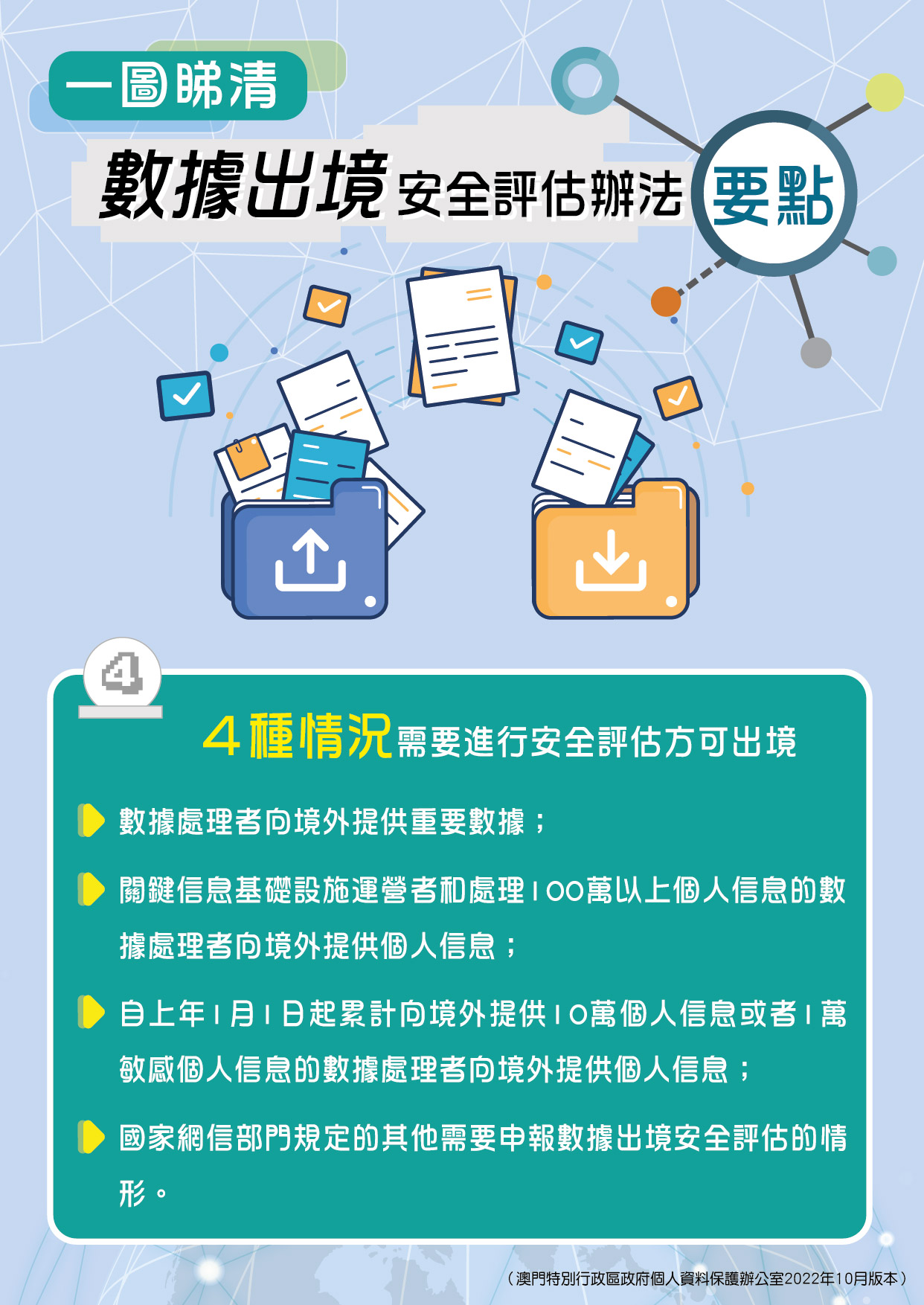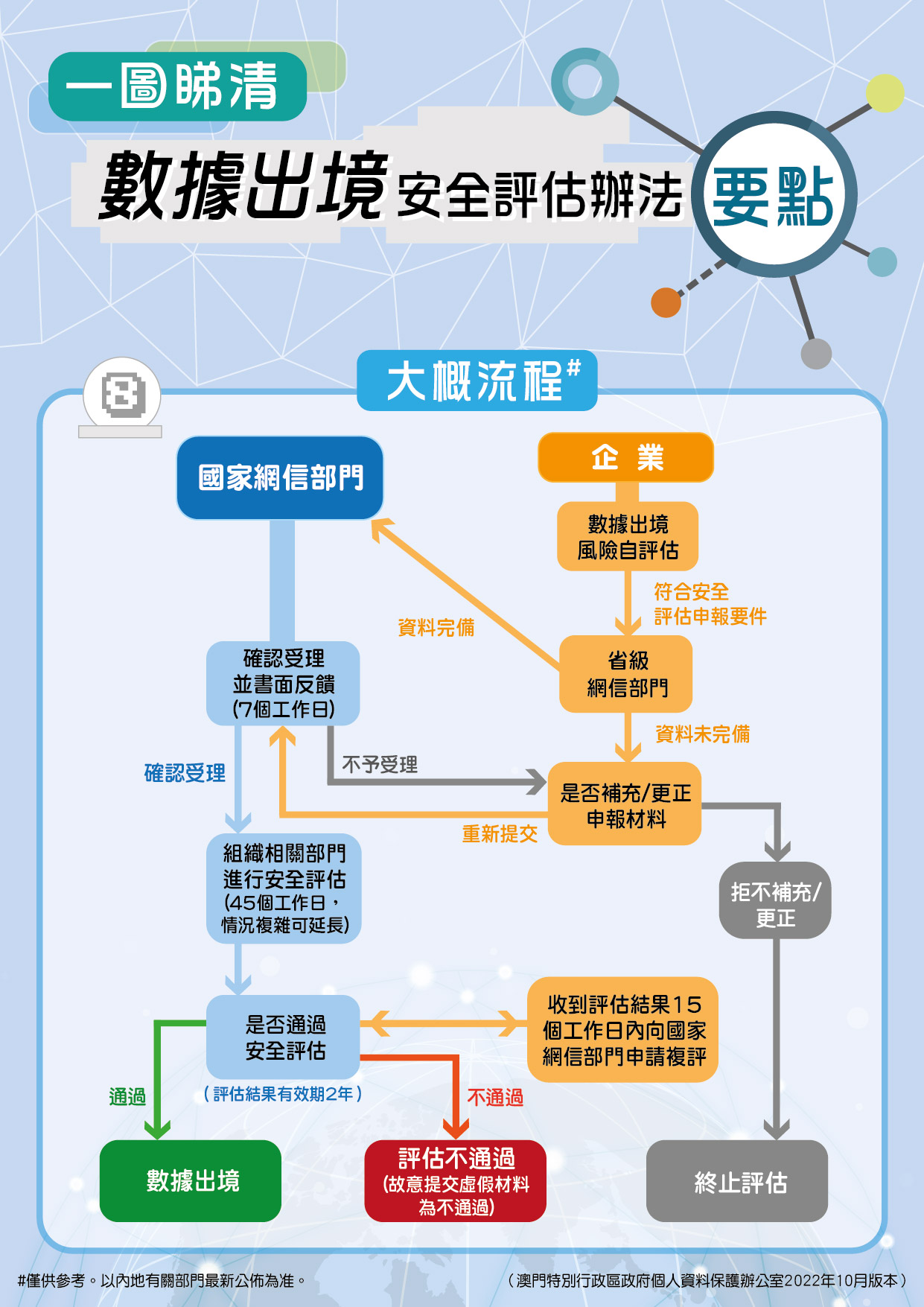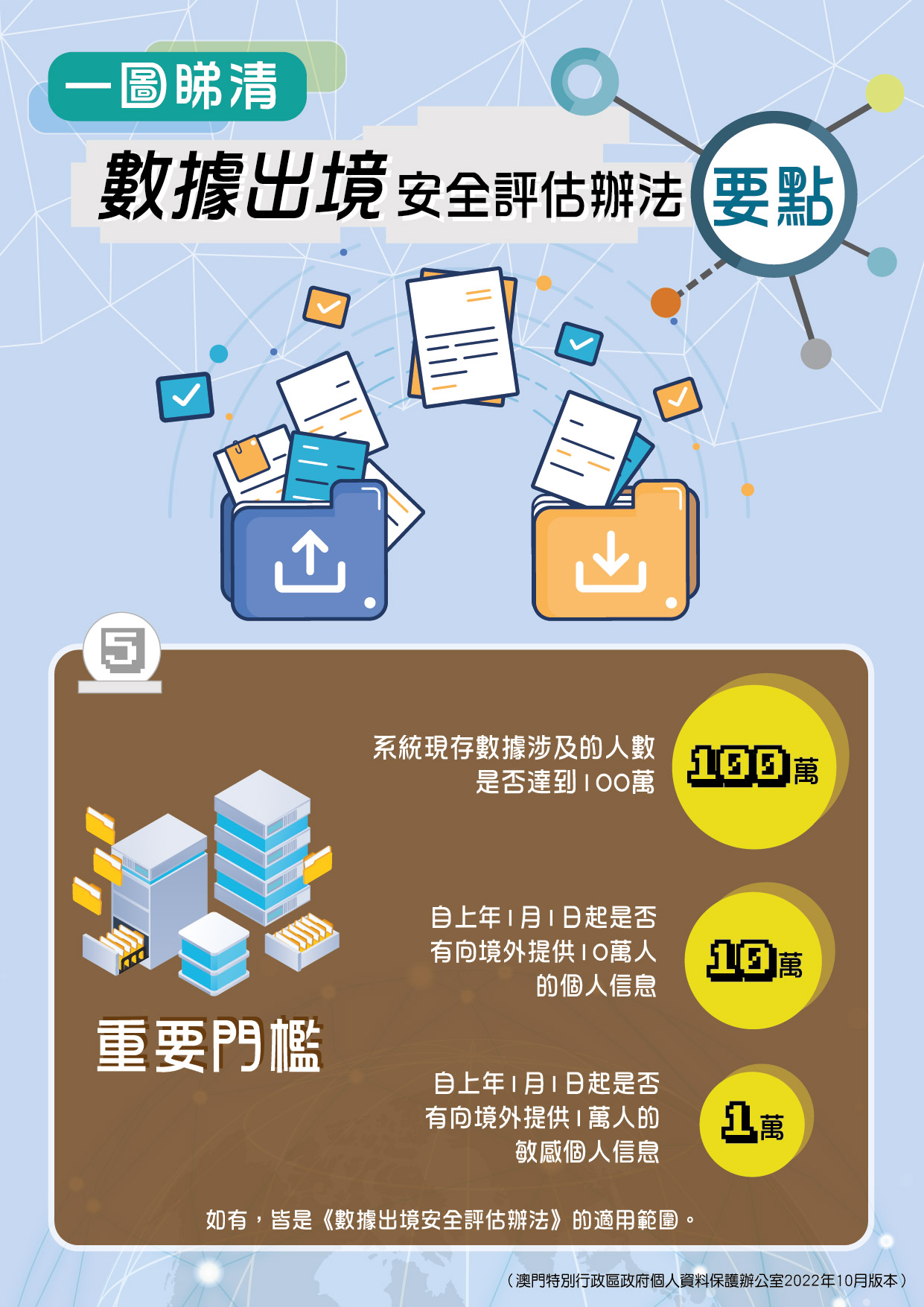 個人資料保護辦公室(下稱“個資辦")呼籲本澳企業了解相關規定,確保依法處理涉及內地跨境的個人資料,而為讓本澳各界了解《評估辦法》的相關規定,個資辦已開展相應合規講解工作,並整理以下重點,供公眾參考: