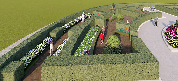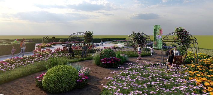 本年冬季花卉展主題花“瑪格麗特”品種繁多,色彩繽紛,整個展覽將結合漫遊歐式花園為環境敘事的構想,適逢明年農曆年為兔年,參觀者可以在層層疊疊的花叢中,發現一連串與花園及兔子相關的趣事。由入口至中心的佈局,依次為自然式花卉景觀,過渡式花壇,最終到達規整對稱的莊園迷宮,讓遊覽路線得以延長,園趣亦得以大大提昇。而觀賞的層次,由入口之神秘,轉為發現、開闊至委婉地進入迷宮繼續探尋,這種不斷轉換的秩序使遊人的體驗逐層提昇。園藝設計師在花展場內不同角落埋下各式各樣老少咸宜的“寶藏”:如各種兔子造型綠雕、打卡點、歐式茶座等,讓市民在遊覽過程中發掘各式趣味和滿溢的節日氣氛。