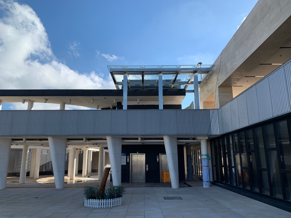 輕軌媽閣站兩側的大範圍花圃草坪及行人路工程仍處於收尾和綠化階段,按照合同工期,預計明年(2023年)第一季前全部完成。