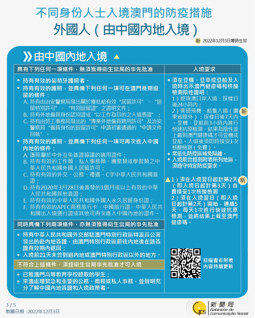 【圖文包】最新入境澳門的防疫措施 (2022/12/03)
