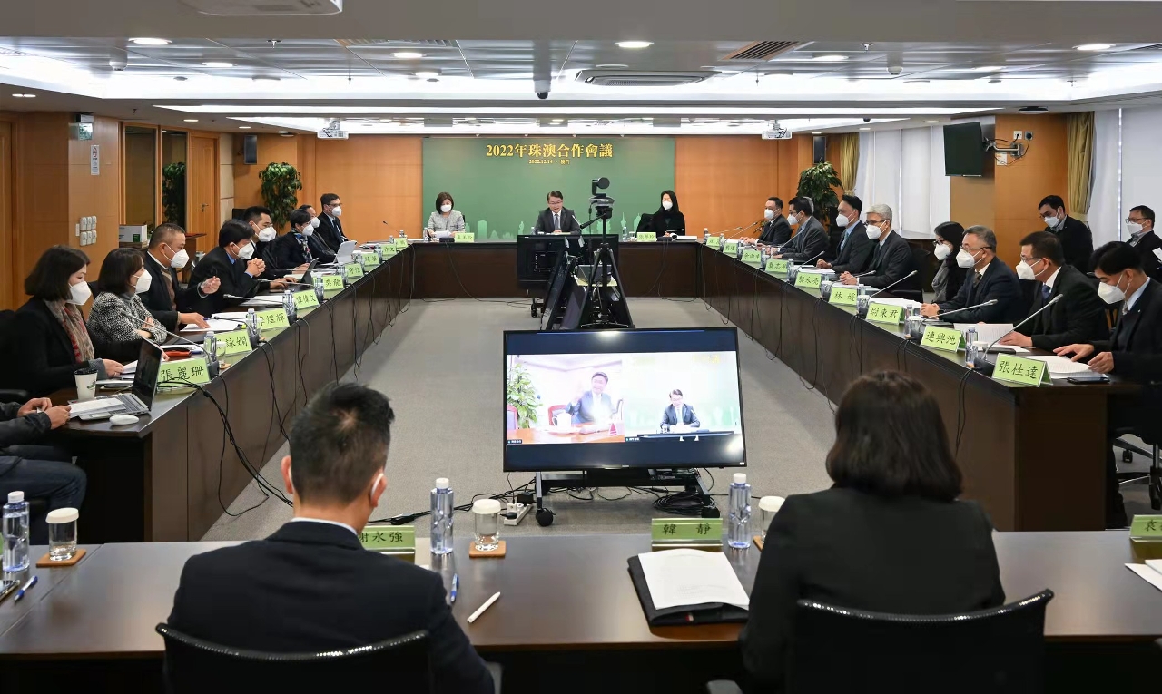 12月14日下午,2022年珠澳合作會議以視頻連線方式在珠海、澳門兩地召開,深入貫徹落實二十大精神,圍繞“全力支持服務橫琴粵澳深度合作區建設、促進珠澳合作高品質發展”的主題,共同謀劃推進珠澳各領域合作向高水平邁進。珠海市委副書記、市長黃志豪,澳門特區政府經濟財政司司長李偉農共同主持會議並作發言。中央政府駐澳門聯絡辦經濟部、橫琴粵澳深度合作區、拱北海關、珠海邊檢總站、珠海海事局等單位代表作為特邀嘉賓出席會議。