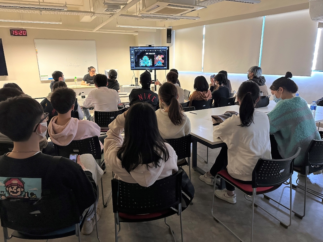 講座上,羅振凌分享其在海外光影節賽事的獲獎項目,以及“光影大三巴”活動的創作歷程,闡述了光雕投影製作的概念、技術、硬體設備,以及後期製作的基本原理,激發創作及思辨討論。其後在投影實踐中,他示範了投影製作的實際應用技巧,並鼓勵在場學生學以致用,讓他們根據主題創作素材,積極進行實踐探索。