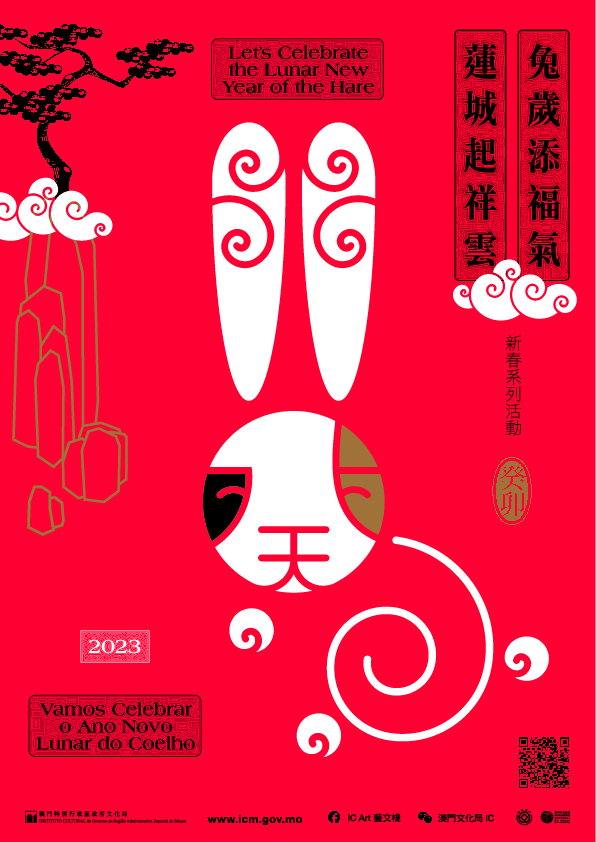 更多“兔歲添福氣 蓮城起祥雲—新春系列活動”的詳情可瀏覽文化局網頁 www.icm.gov.mo、Facebook專頁“IC Art 藝文棧”及微信專頁“澳門文化局IC”。