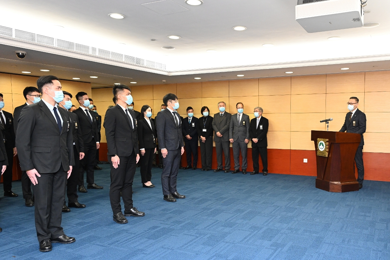 司警局貫徹三個並行理念,重視執法隊伍建設。是次就職的38名人員在實習前先參與了由本澳司法官、法醫、專家學者、司警局主管或資深人員,以及其他政府部門代表執教的“第20屆實習刑事偵查員培訓課程”,接受了752小時與刑偵工作相關的基礎理論和專業技能培訓。在完成培訓課程並通過嚴格考核後,相關人員被派往不同的調查科進行為期一年的實習,在專業面試合格後正式成為司警局的二等刑事偵查員,具備足夠能力協助執行各項預防和調查犯罪的工作。
