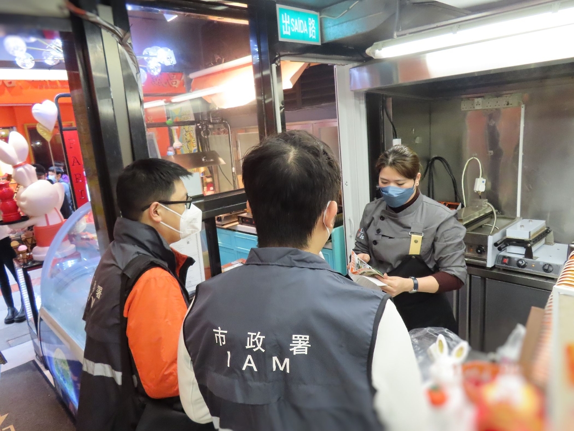 歲晚及新春向來是餐飲消費高峰,市政署加強巡查本澳食品生產經營場所,並向從業員展開教育宣導,提醒業界必須嚴格按照《食品安全法》及各項食品安全衛生指引,做好食品採購、製作、展示及售賣等過程中的食安操作,以維護本澳食品安全。