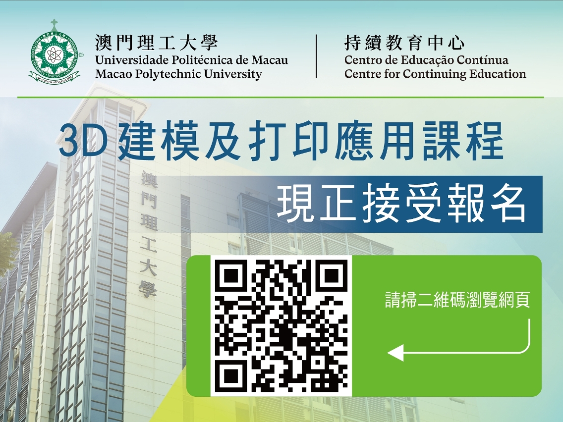 為配合市場對3D打印學習相關技術的需求,澳門理工大學持續教育中心即將開辦“3D建模及打印應用”課程,內容包括認識3D建模至打印全過程的工作流程、介紹模型製作軟件及應用、認識三維模型常用格式及獲取模型方式、3DS MAX基礎技術及各種操作指令、練習3D建模操作、3D打印機的設定與使用、模型優化與印後處理等。課程由設計企業創意總監任教,導師具設計碩士學位、多年工業產品設計經驗、曾多次獲國內外創意設計獎項,並於澳門理工大學藝術及設計學院設計學士學位課程兼職任教。課程現已接受報名,報名日期至2023年3月1日,額滿即止。