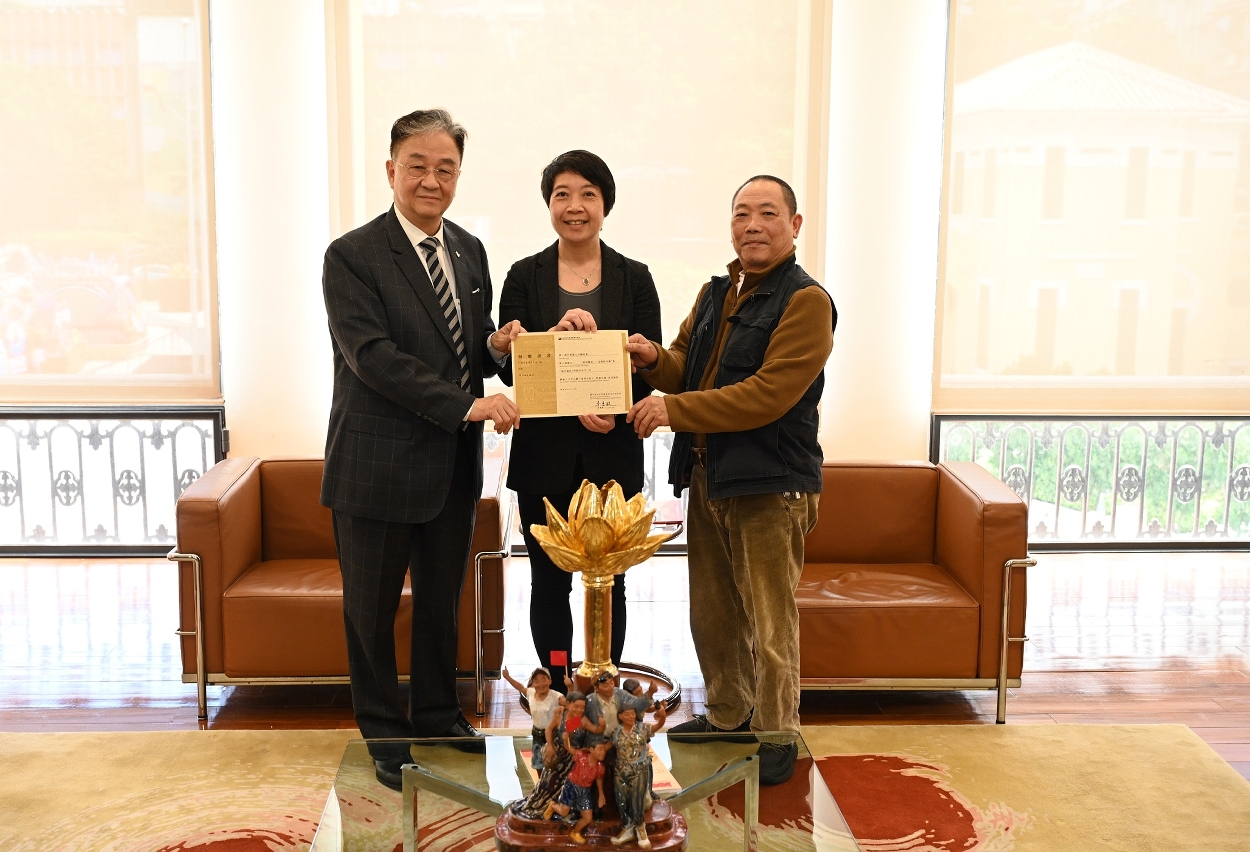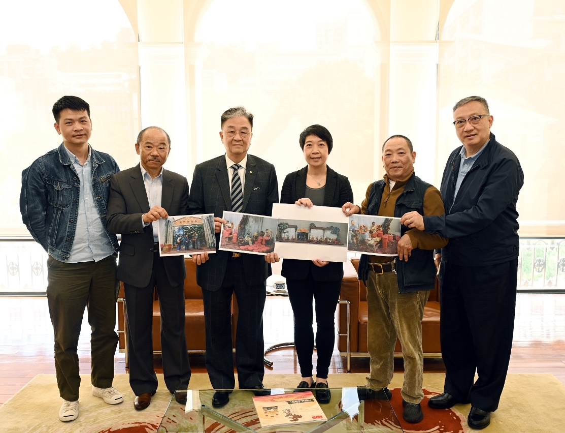 文化局獲澳門智慧人文勵政會捐贈之“鏡湖醫院”、“益隆炮竹廠”及“盛世蓮花”陶藝作品,捐贈儀式日前(2月10日)在文化局大樓舉行,文化局局長梁惠敏向捐贈者頒發捐贈證書,澳門智慧人文勵政會會長吳在權及理事長廖信君、大灣區陶藝收藏交流協會會長李月成及理事長郭棟舉、廣東省陶瓷藝術大師黃焯南及佛山市陶瓷藝術大師潘康安等出席。是次捐贈進一步充實文化局的澳門美術作品系列收藏,文化局對此表示感謝。