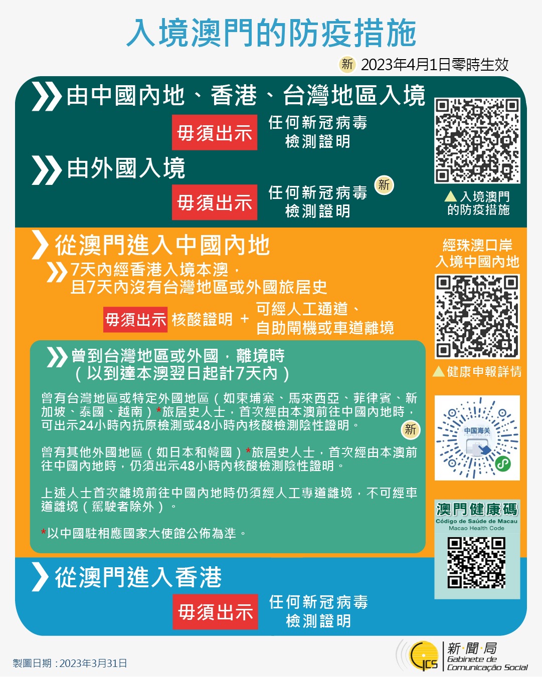 【圖文包】最新入境澳門的防疫措施 (2023/3/31)