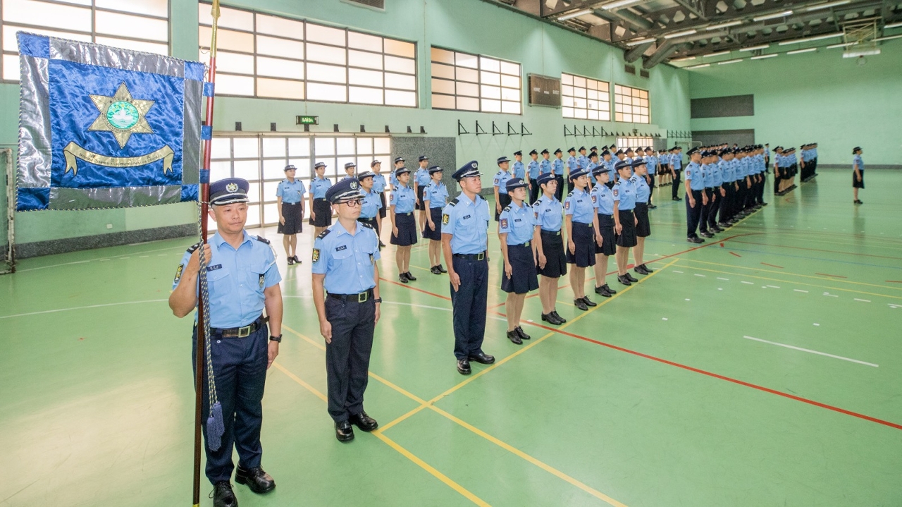 4月20日,治安警察局在特警隊大樓為新入職警員舉行就職儀式,儀式由治安警察局黃偉鴻代局長主持,梁慶康副局長及各部門主管一同出席為新警員戴上肩章。