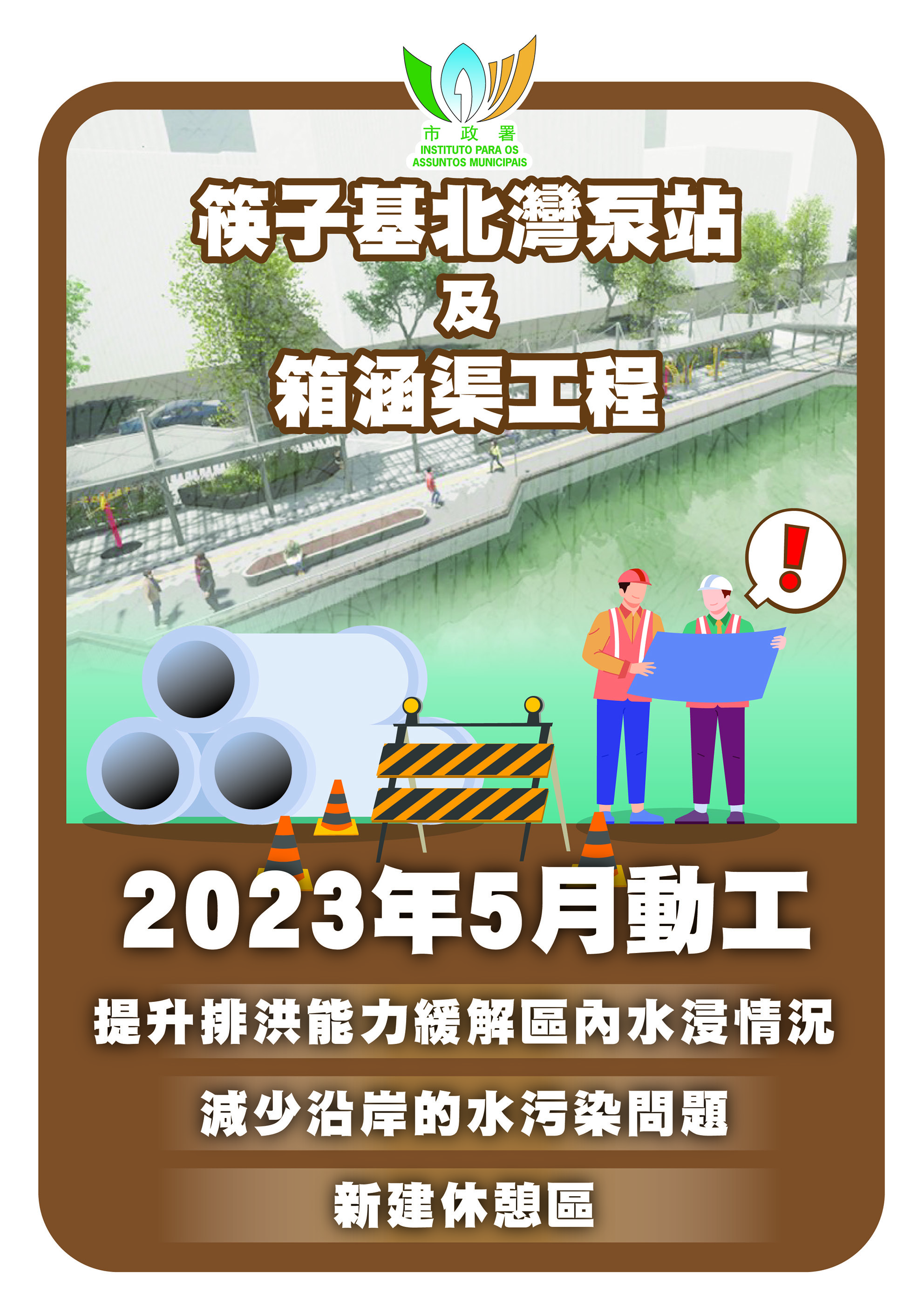為緩解筷子基區及林茂區因暴雨引起的水浸情況,市政署將分階段興建筷子基北灣泵站及箱涵渠,加大區內整體排雨水能力,並藉工程擴展俾若翰街沿岸空間,增設總面積達二千多平方米的海濱休憩區,為市民提供多元休閒空間。而為減少對交通的影響,工程前期將先擴闊俾若翰街的行車空間,以創造條件增設行車道,使工程期間亦可保持通車,敬請市民留意有關路段將實施之臨時交通安排。