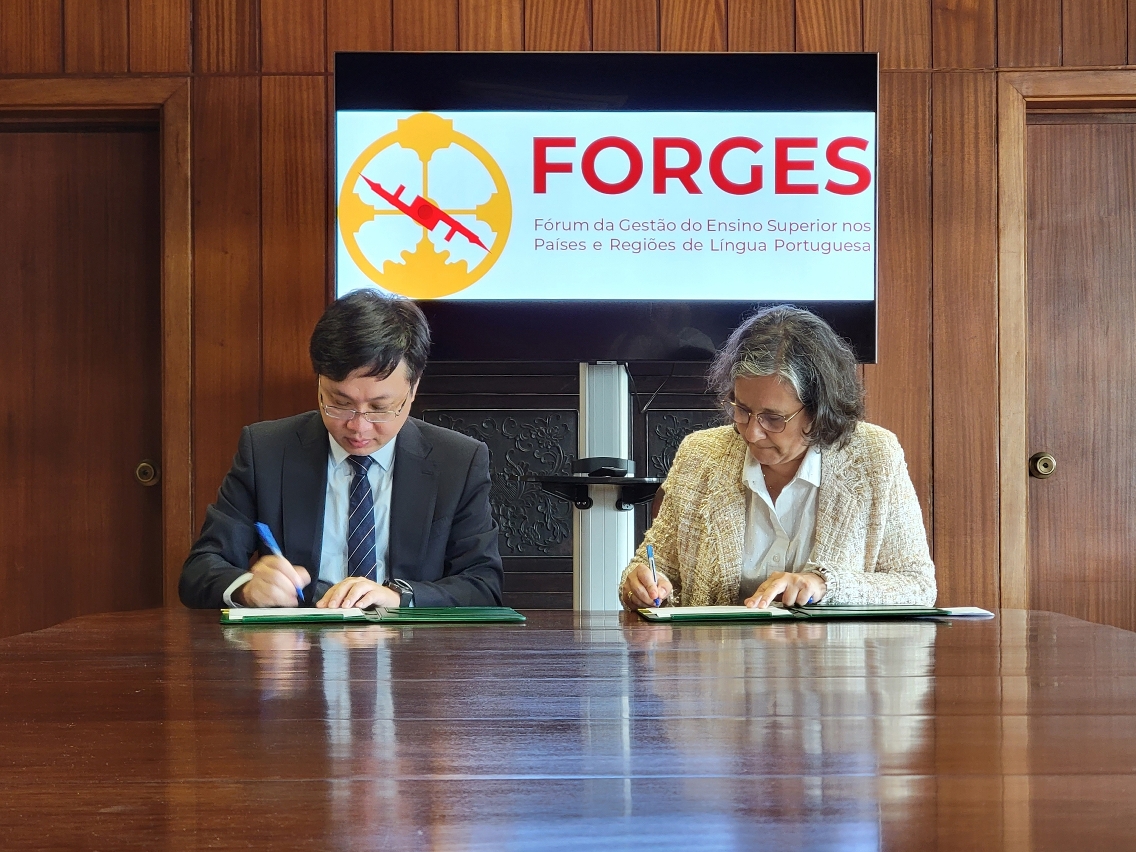 為發揮澳門中葡平台作用、促進中國與葡語國家及地區的高等教育合作,推動粵港澳大灣區的中葡學術交流合作,澳門理工大學與葡語國家及地區高等教育管理聯盟(FORGES)於當地時間5月24日早上在葡萄牙里斯本,由澳理大校長嚴肇基及葡語國家及地區高等教育管理聯盟主席團成員Maria da Conceição Peixe Rego代表雙方簽署合作協議,共同推動科學發展、開展協同創新研究、聯合培養專業人才及科研項目合作。