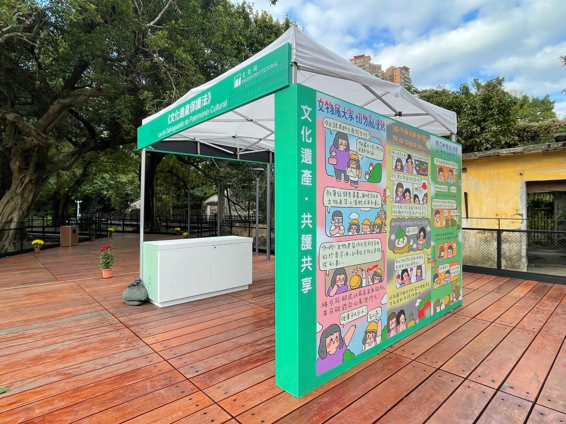 文化局持續加強文遺普法工作,自2019年起於全澳各區巡迴設“文化遺產流動宣傳站",6月份將繼續於林茂海邊大馬路休憩區設宣傳站,以圖文並茂的展板、推廣小冊子、攤位有奬小遊戲及專人講解(逢周日下午2時30分至5時30分),介紹本澳文化遺產以及《文化遺產保護法》中與居民生活、旅客遊澳相關的資訊,7月至12月站點安排將另行公佈;此外,將在何東圖書館、氹仔中央圖書館、澳門演藝學院及其戲劇學校、音樂學校,以及聖保祿學院天主之母教堂遺址(大三巴牌坊)巡迴設置漫畫展板,以輕鬆活潑的四格漫畫小品,向市民旅客傳播文遺保護資訊;親子手偶小劇場亦定期於每月第三個星期日下午3時至4時在盧家大屋上演,以生動有趣的方式推廣《文化遺產保護法》與日常生活相關的法律知識。